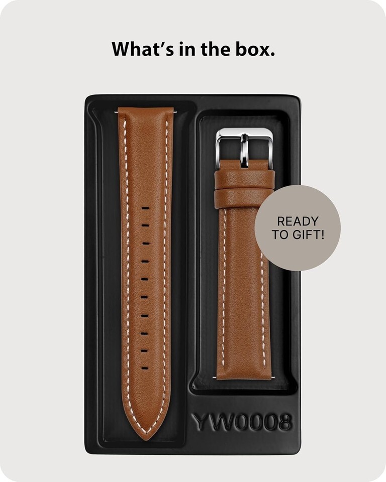 Package Includes: 1 Leather Watch Band, 1 Spring Bar Tool for easy installation, and a Quality Control Card.
