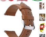 - Adjustable 22mm Leather Watch Band in Brown with Silver Buckle, Quick Change