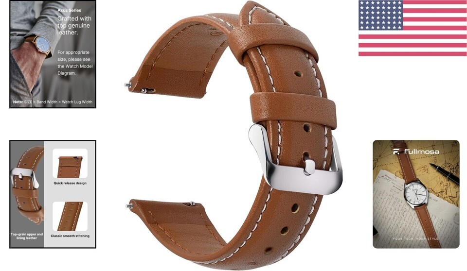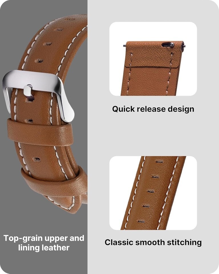 High Quality Leather: Crafted from flexible genuine leather, this 22mm watch band ensures a comfortable wearing experience. The rich brown tone pairs effortlessly with a silver buckle, making it suitable for any occasion.