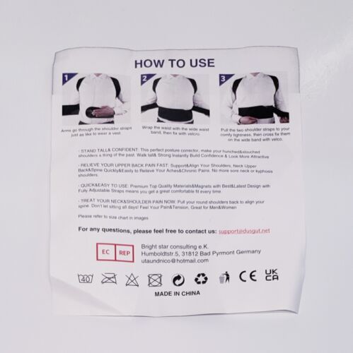 - ADJUSTABLE BACK BRACE POSTURE CORRECTOR FOR PAIN RELIEF XX-LARGE BLACK - WORKS!