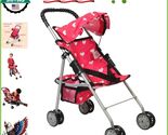 - Adorable Pink Doll Stroller with Double Wheels & Foldable Basket - 18" Fit