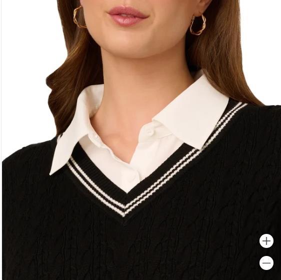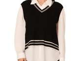 - Adrianna Papell Womens Sweater Vest Blouse Black Multicolor Long Sleeves Soft