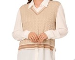 - Adrianna Papell Womens Sweater Vest Blouse Cream Multicolor Long Sleeves Soft