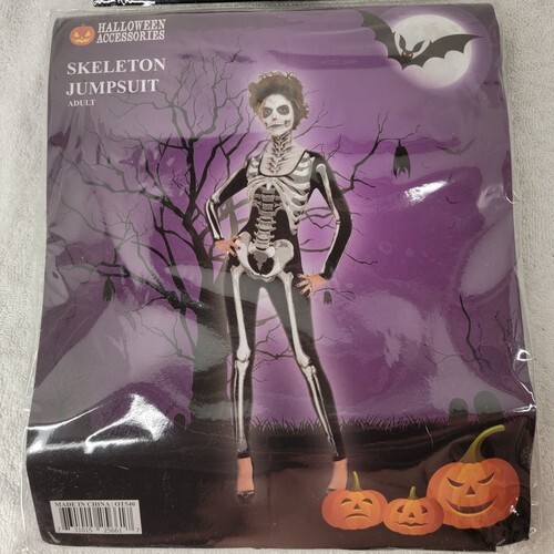 ADULT SEXY SKELETON BABE BONES Jumpsuit Catsuit HALLOWEEN COSTUME BLACK NEW