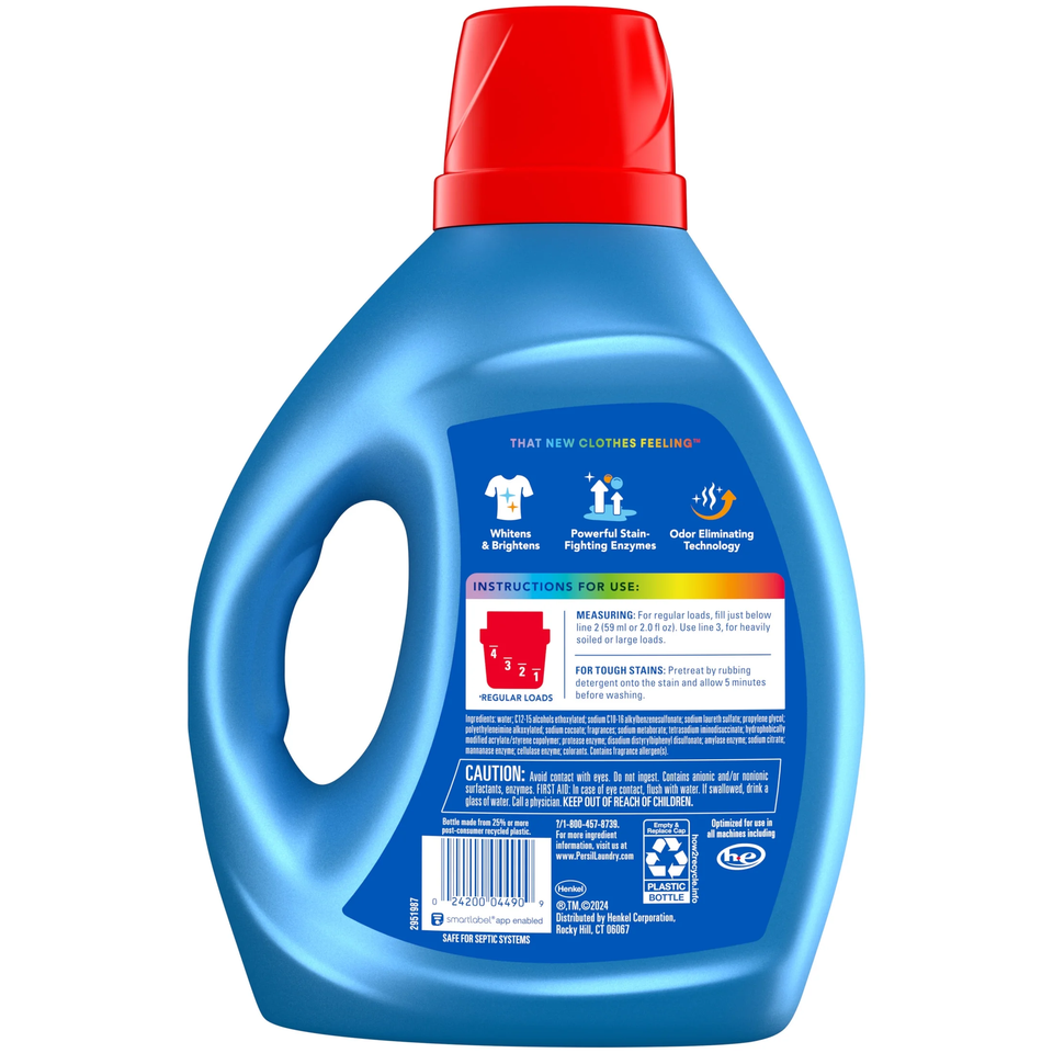 Experience the advanced clean of Persil Advanced Clean Oxi+Odor Power liquid laundry detergent. With powerful stain-fighting enzymes and odor-eliminating technology, it keeps whites and colors vibrant. Persil tackles tough stains and delivers a premium clean in all water temperatures, including cold. Suitable for all washer types, including high-efficiency (HE) machines. Persil ensures your clothes look newer for longer*, so you can feel your best, wash after wash. Enjoy that fresh, new clothes feeling with Persil. Wash with Persil. *vs leading value. 100 fl oz, 50 Loads