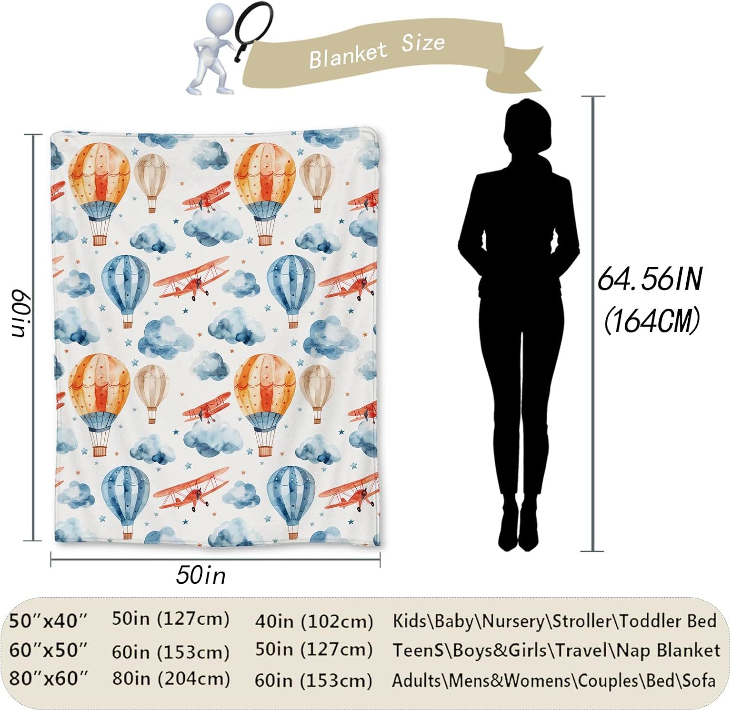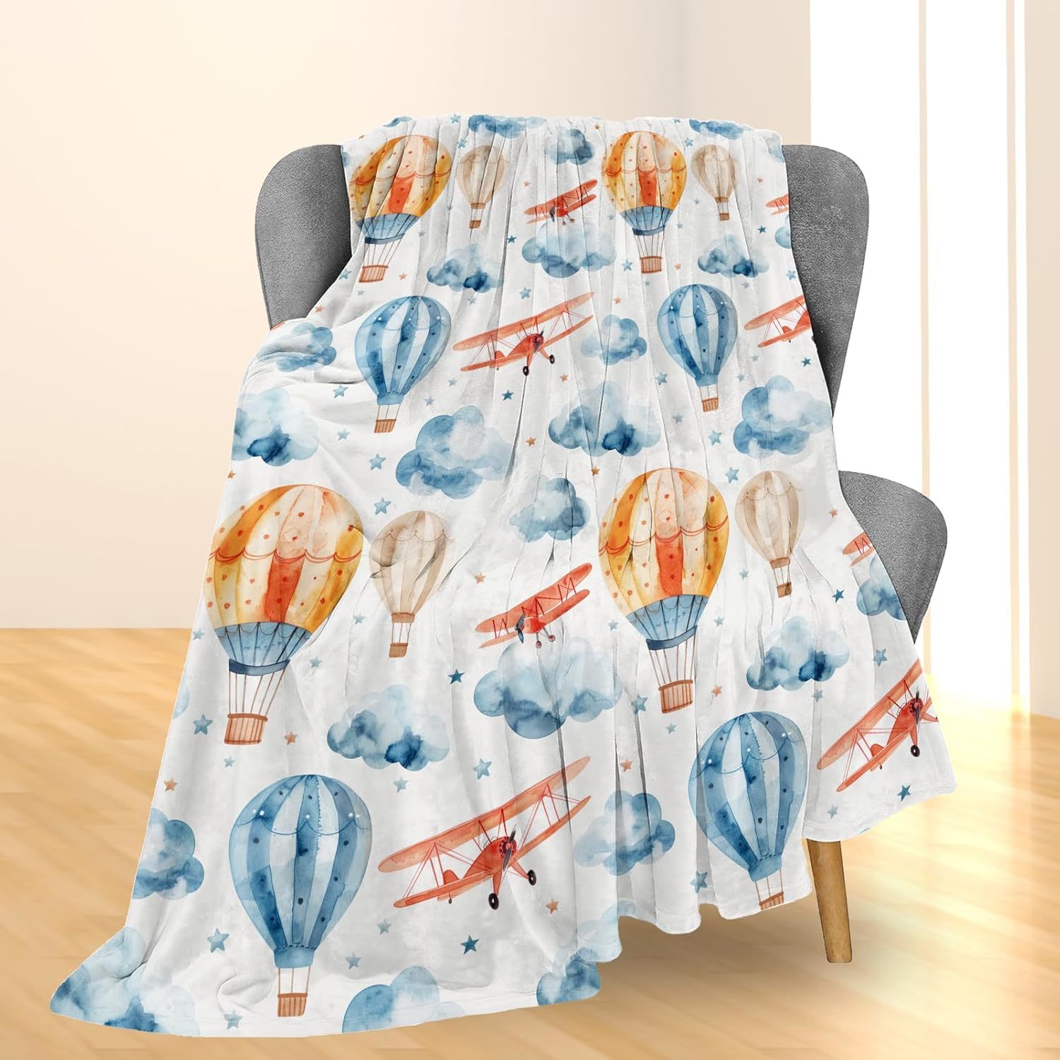 - Adventure Hot Air Balloon And Airplane Blanket | Soft Warm Fuzzy Lightweight