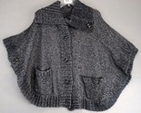 Aerie Chunky Knit Wool Blend Gray Sweater Poncho Women's XS-S Buttons Pockets