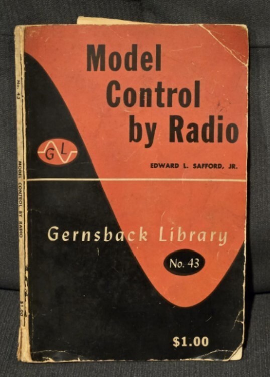 Book: The paperback book is titled Model Control by Radio, a volume from the Gernsback Library. It was written by Edward L. Safford Jr. and was published around 1951 or 1956, providing technical information on building and operating RC models using early tube-based technology.