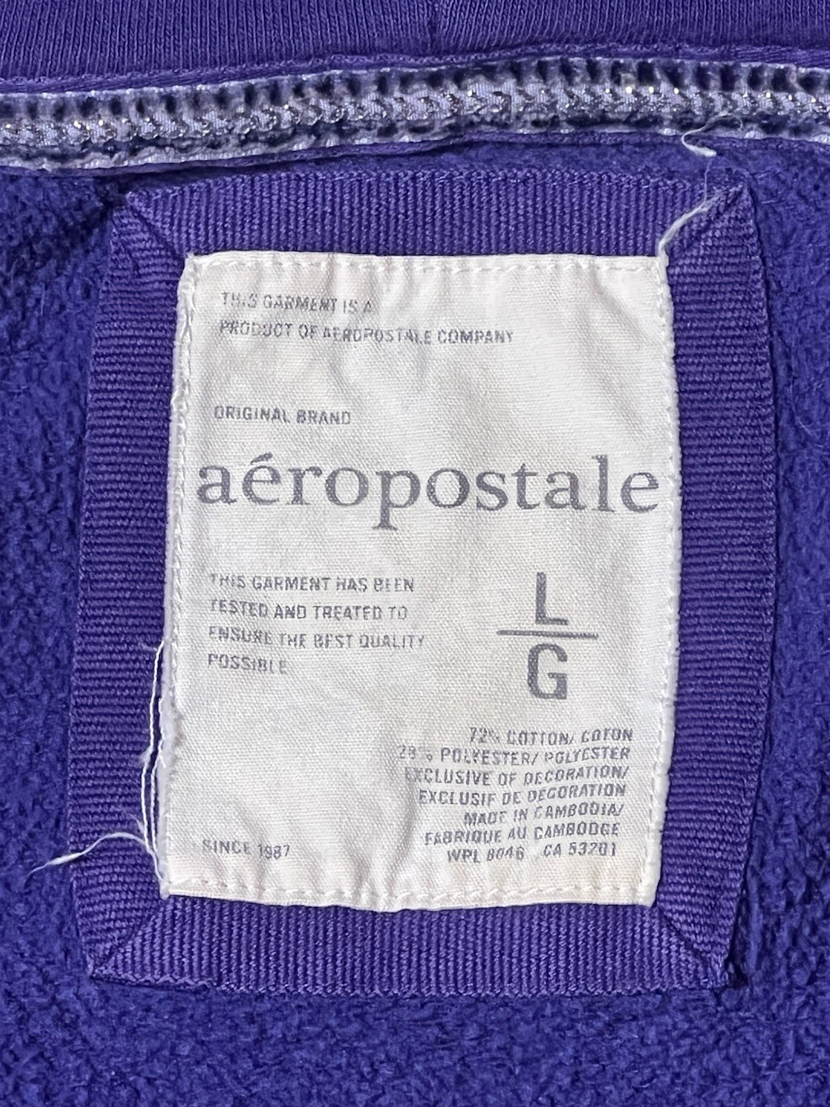 The Aeropostale Full Zip Hoodie in size Women?s L in Purple is a stylish and comfortable activewear piece perfect for everyday wear or workouts. Made by Aeropostale, this hoodie features a full zip design and a hood for added warmth and style. The purple color adds a fun pop to your outfit, while the regular fit is perfect for a variety of body types. Whether you're running errands or hitting the gym, this hoodie is a versatile and fashionable choice.