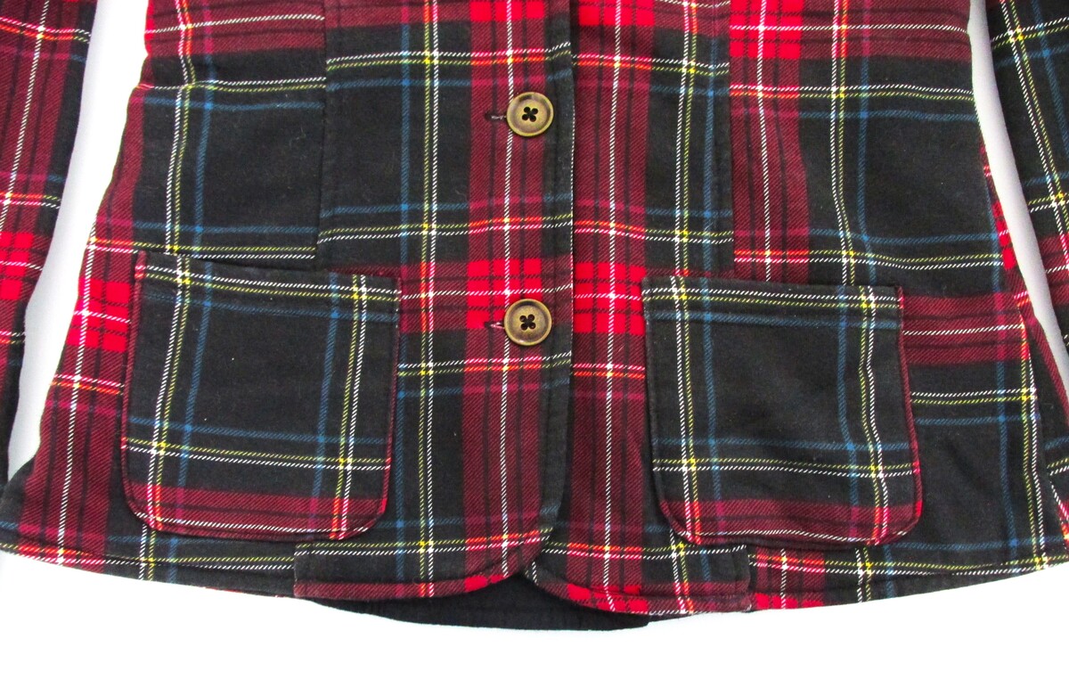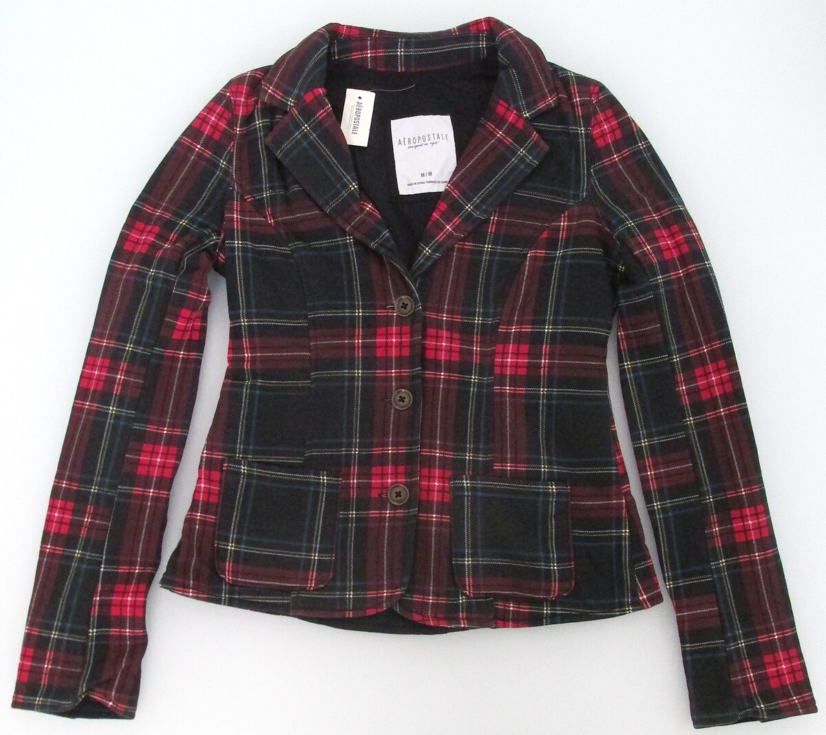 Description: Up for sale is an Aeropostale (NWT) women's single breasted cotton blazer. This blazer is size medium. It is made of 70%cotton/30%poly blend fabric. It has a multicolored plaid design in red, green, blue, yellow black. It has a 3 button single breasted front with 2 front accent pockets. The jacket features a single rear vent. This jacket has the original $74.50 price ticket attached.