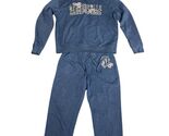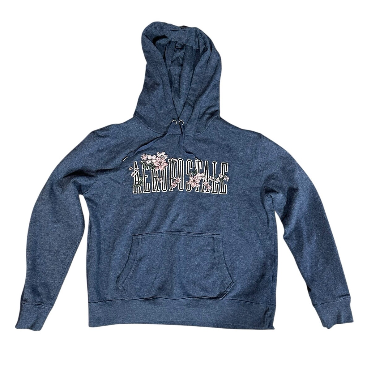 Aeropostale Women's 2 Pc Jogger Sweat Pants and Hoodie Set Blue with Pink Embroidered Flowers and Logo