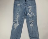 Aeropostale Womens Mom Jeans Size 8 Blue Light Wash Distressed Destroyed Cotton