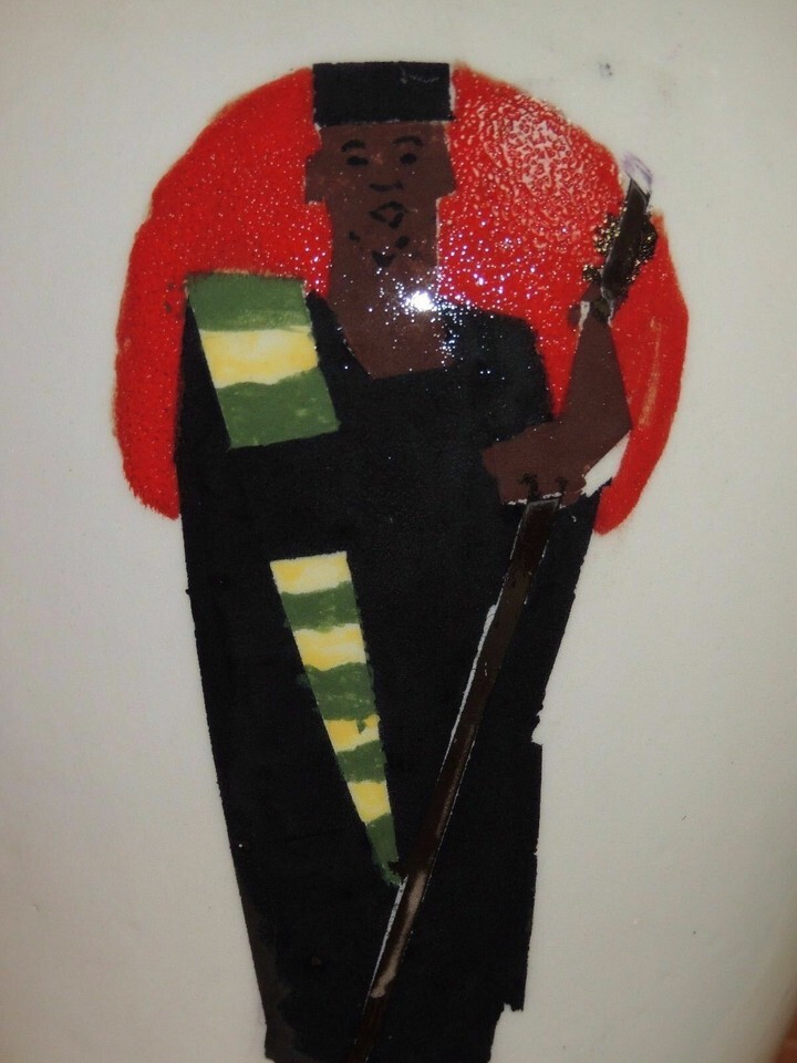 - Africa theme 9.5" Vase Hand Painted handmade ceramic Vintage art pottery KC