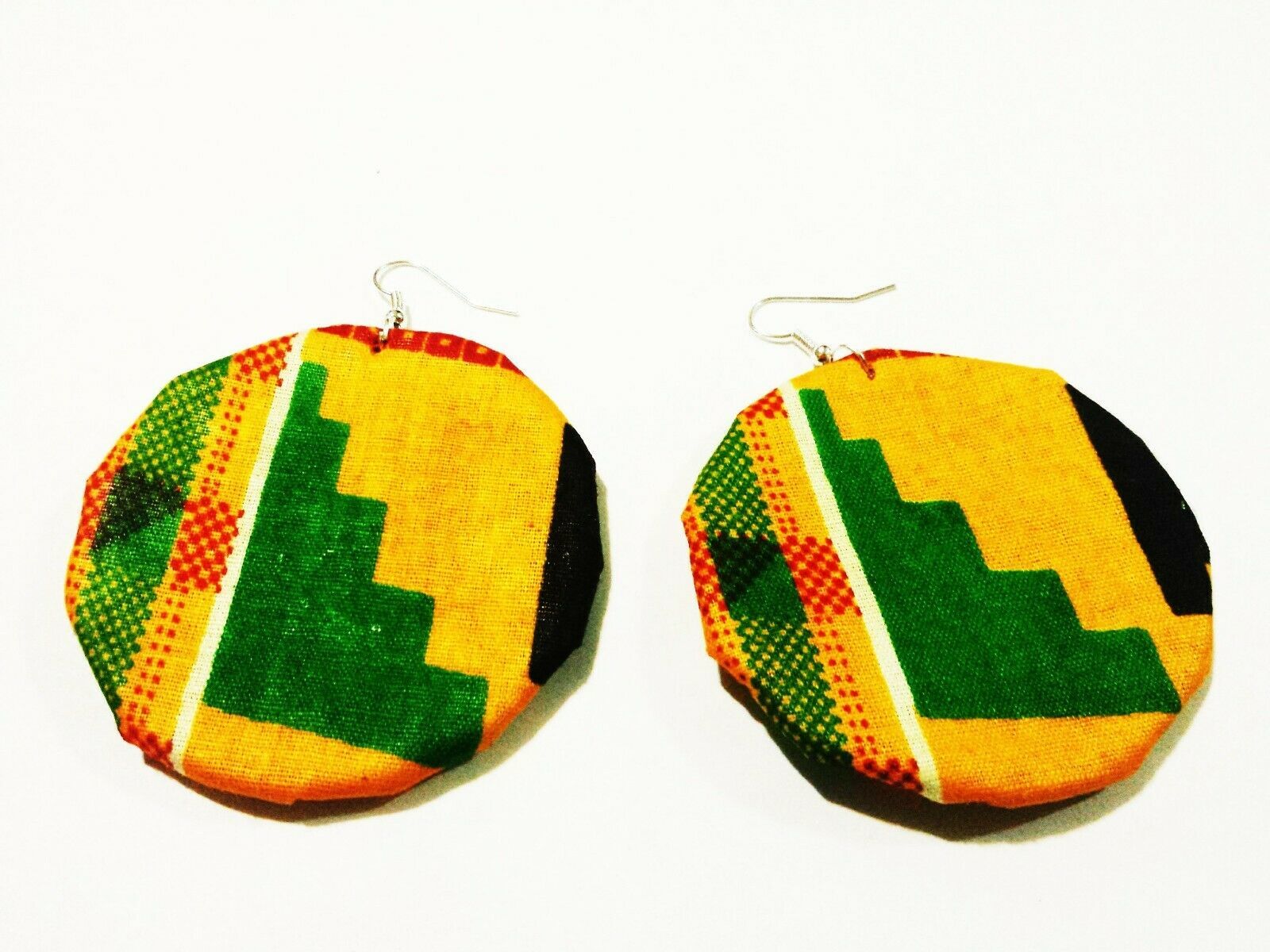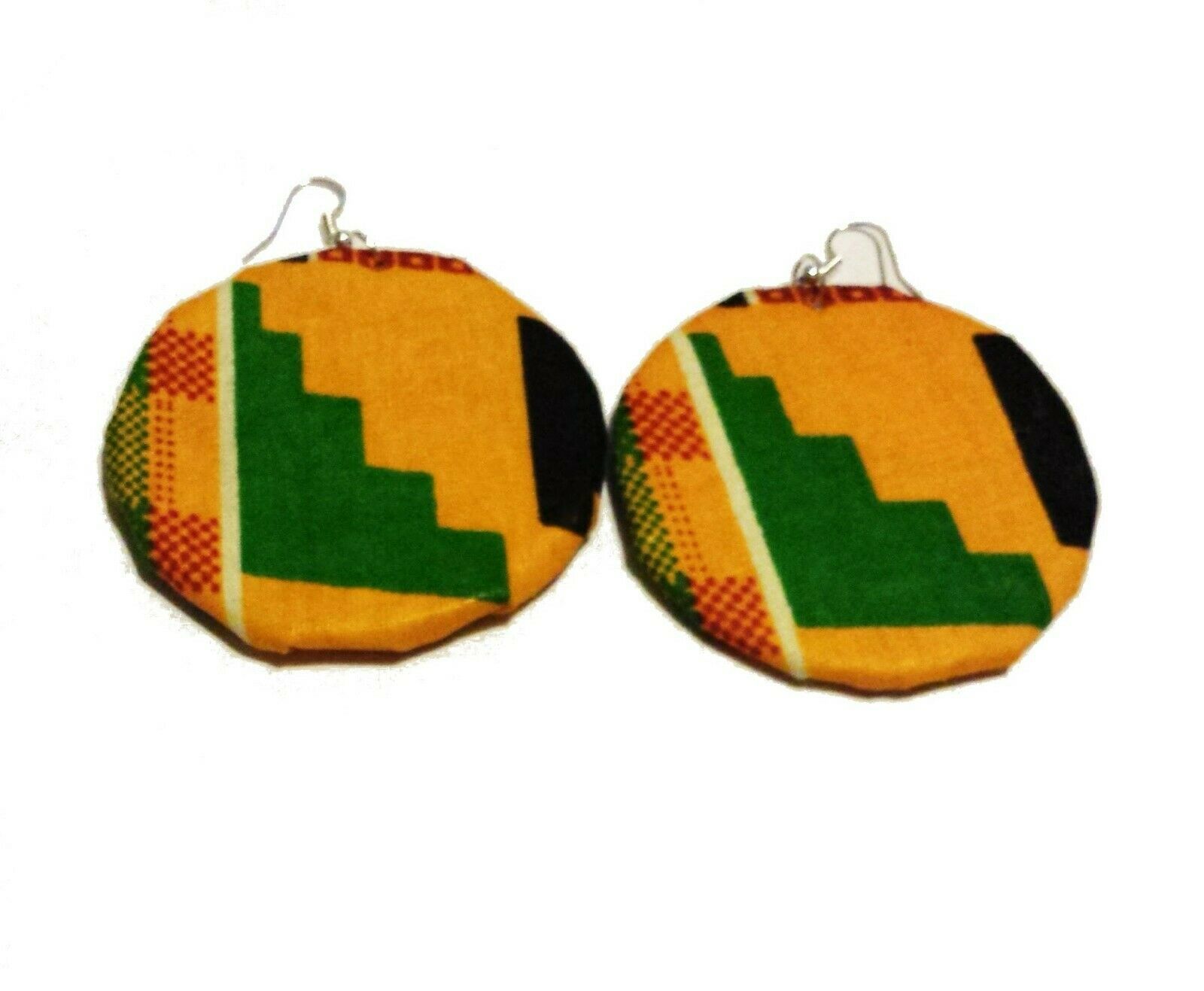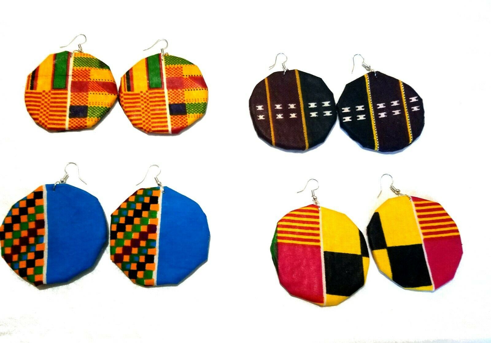 African Fabric Ankara Kente Prints Hook Earrings - (35mm) .