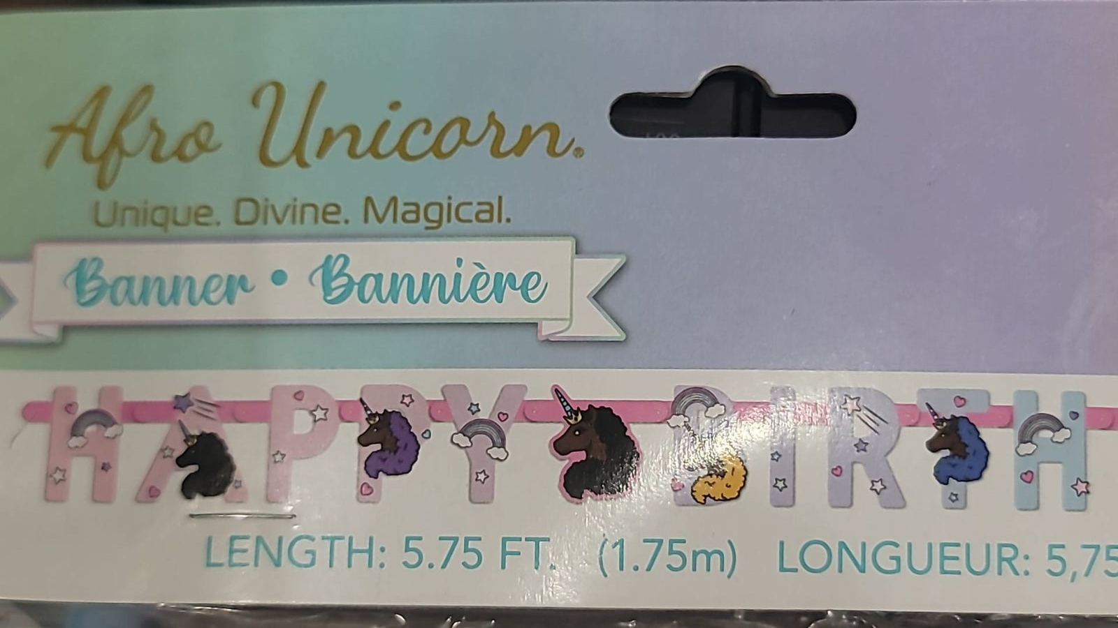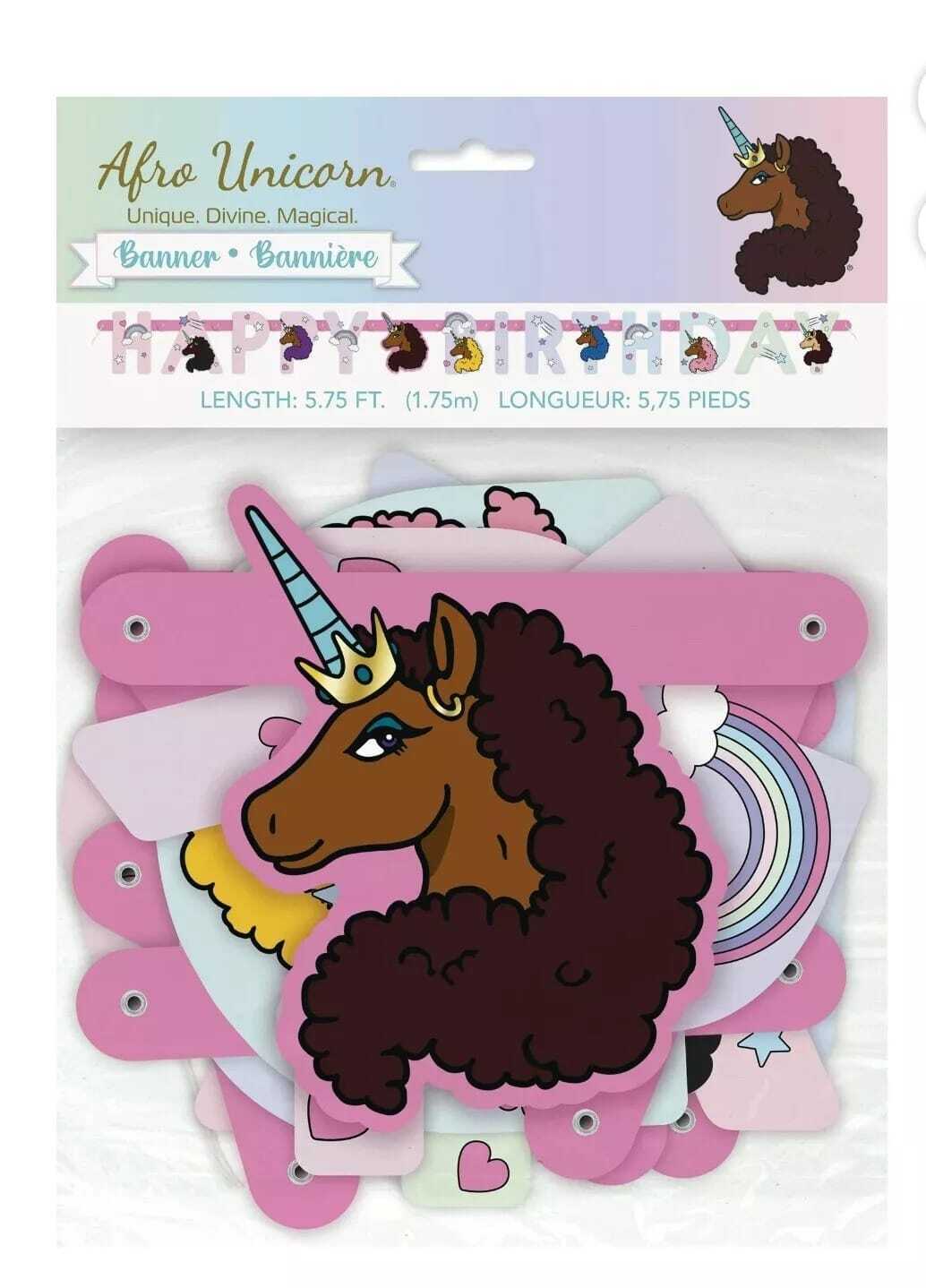 - Afro Unicorn Unique Divine Magical Happy Birthday Banner 5.75 ft (1.75m)
