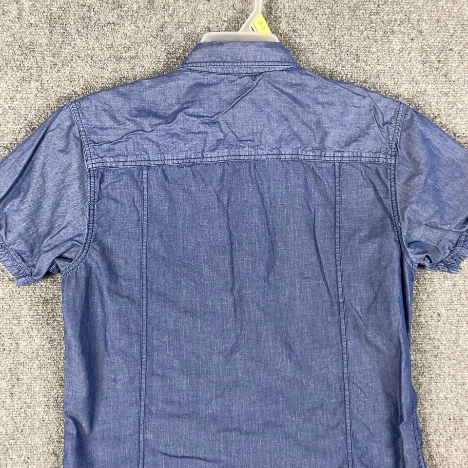 Age of Wisdom Button Up Shirt Men's Large 100% Cotton Short Sleeve Blue