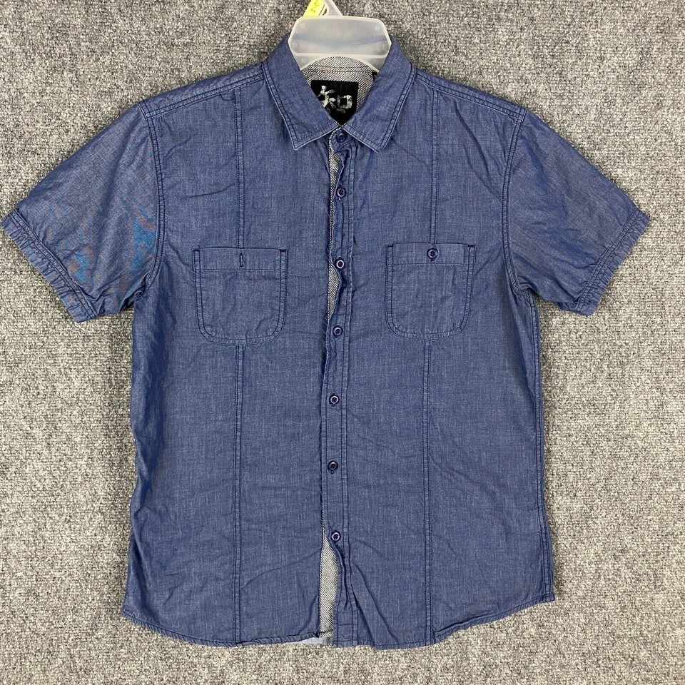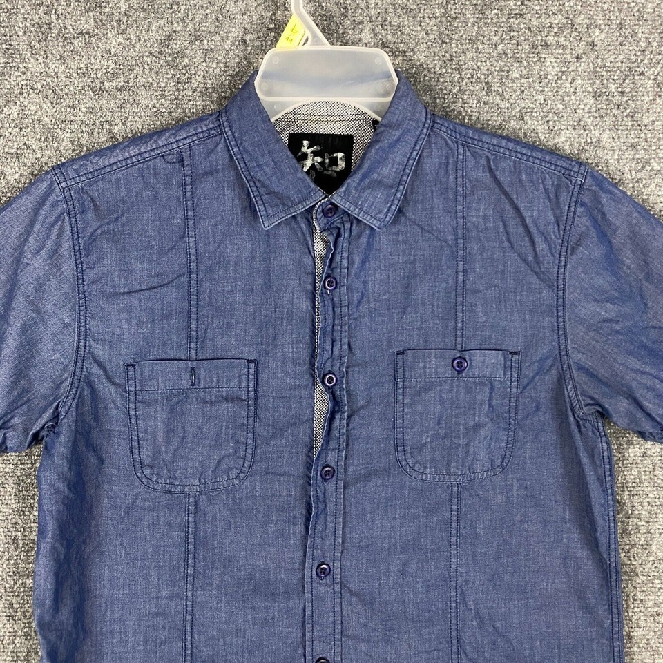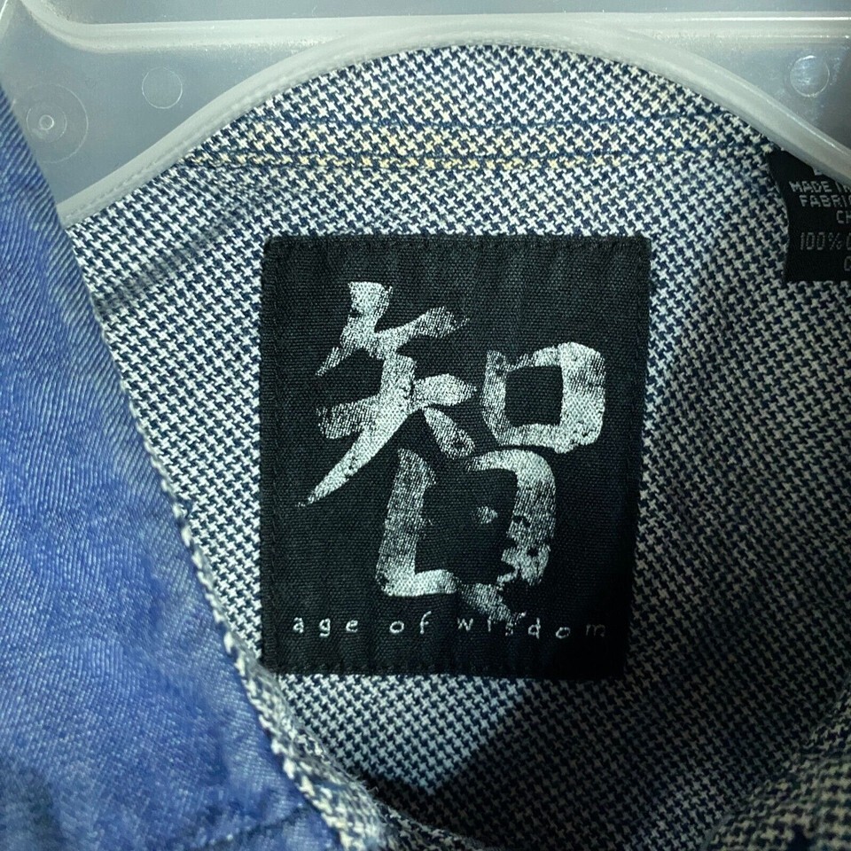 - Age of Wisdom Button Up Shirt Men's Large 100% Cotton Short Sleeve Blue