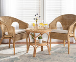 Designate a tranquil corner in your home to rest and relax with the lovely Agnes living room set. Handcrafted in Indonesia, this serene set includes two armchairs and one coffee table comprised of natural rattan. Each chair is fitted with a plush fabric upholstered seat cushion as well as sloping armrests for superb relaxation. The Agnes set will arrive fully assembled and features a wide, circular tabletop to organize your layout. With wonderfully fashioned designs reminiscent of a tranquil get-away, the Agnes living room set elevates the atmosphere of any space.