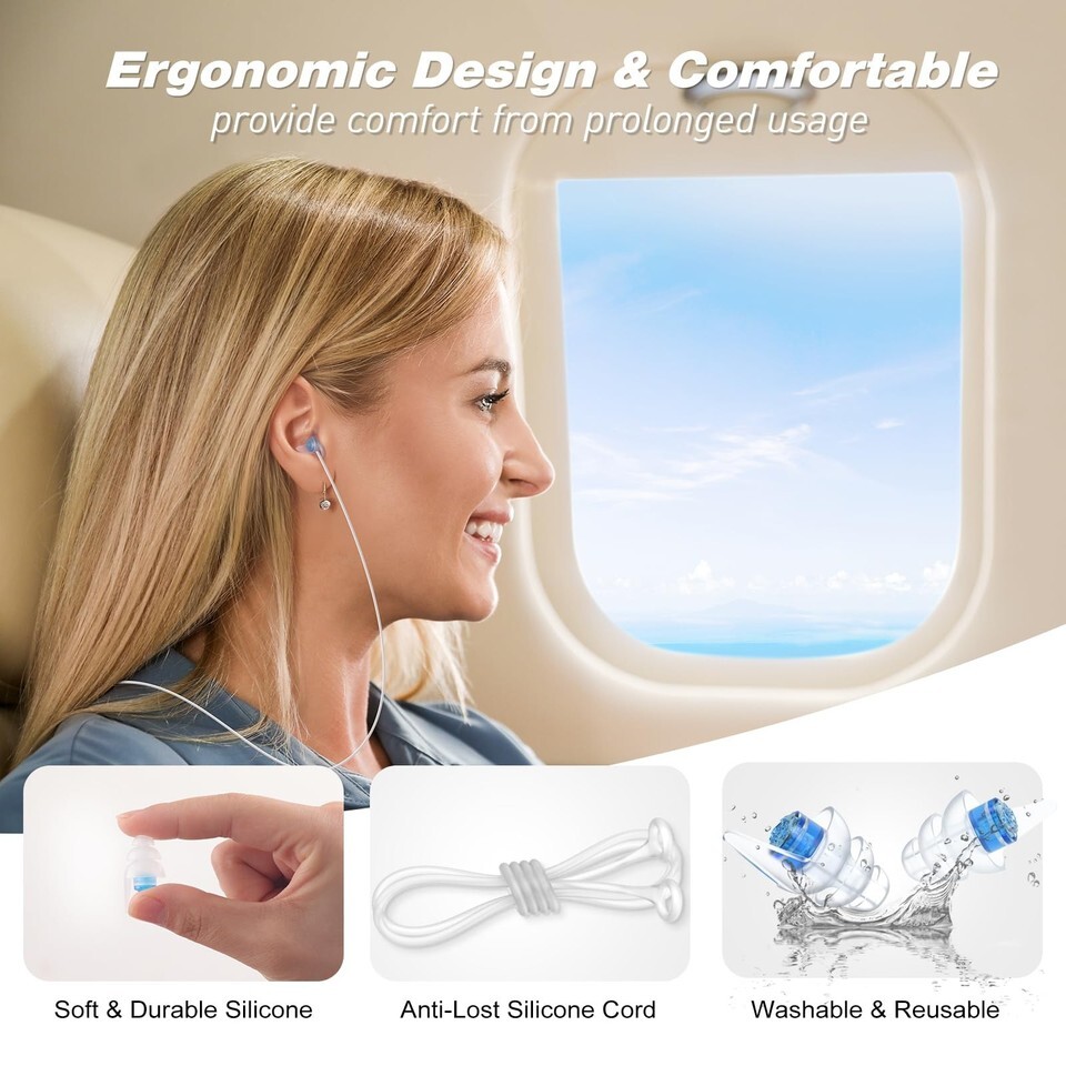 Soft Comfortable: Made of soft silicone material, ergonomic and 3-layer flange design, allows for a secure fit and prolonged wear, easy-grip stem allows for easy insertion and removal. A must haves travel essentials for flying