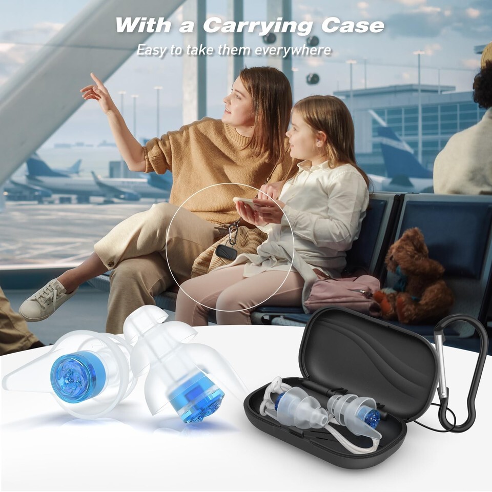 Portable Reusable: The earplugs for plane pressure are reusable 100x+, can be washed with warm soapy water. A portable case with carabiner, you can hang them on your bag or keychain, for a quick and easy storage of the ear plugs. Anti-slip silicone cord ensure a secure fit by minimizing the risk of earplugs slippage