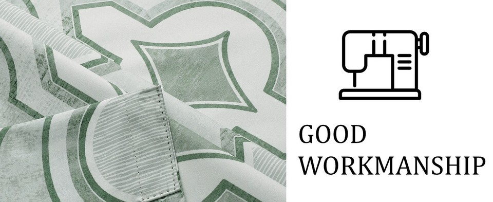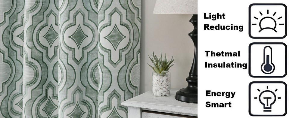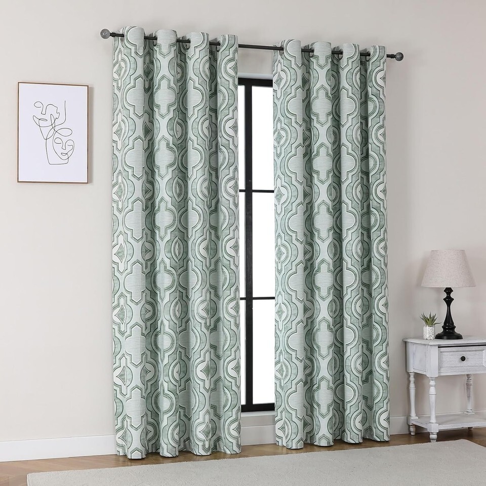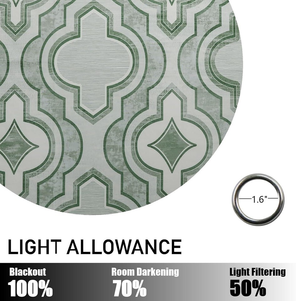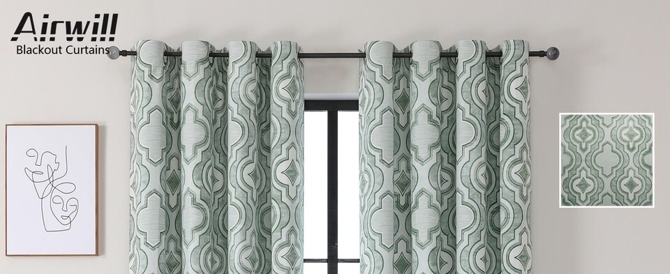 Airwill Blackout Curtain Green Geometric Design 84" Length, 52" Width, Set of 2 Panels Easy Install About this item Ready-Made and Sold in Pairs: Package includes 2 panels of 52" x 84" each Utility Function: triple weave fabric construction blocks out 75%~80% light and UV rays, regulates temperature, provides privacy protection, and reduces noise Moroccan Geometric Design: classic geometric print composed of hexagons adds elegance to your decor. Eight silver grommets create a modern design and easy installation Retro Vintage Pattern: contemporary and stylish geometric pattern mixes light and dark gray tones against a white background, creating a modern aesthetic Triple Weave Fabric: Ideal for a nursery, bedroom, living room, office studio, apartment dorm, or any other windows that need the perfect finishing touch Color Retro Vintage Geometric, Green Opacity Blackout Room Type Bedroom, Dining Room, Home Office, Living Room, Nursery Style Name Modern Pattern Solid Theme Art, Fashion Curtain Form Drapes top-style Grommet Seasons All Season, Autumn, Spring, Summer, Winter Material Type Triple weave thermal insulated 100 blackout Weave Type Plain Product Care Instructions Do Not Bleach, Do Not Soak, Dry In Shade, Low Iron, Tumble Dry Lining Description Unlined Water Resistance Level Not Water Resistant Measurements Item Dimensions L x W 84"L x 52"W Size 52"W x 84"L (Pack of 2) Features Specs Additional Features Fade Resistant, Long Lasting, Stain Resistant, UV Protection, Wrinkle Free Fits Rod Size 1.6 Inches Important information Safety Information Avoid using bleach and do not soak the curtains when washing. Always follow the care instructions to ensure the longevity and safety of the product. Shipping Weight is 3 lbs 14 ounces.