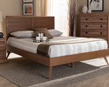 Enhance your bedroom with the clean lines and warm tones of the Aislin bed. Built with a low platform, the Aislin features angled legs for a chic mid-century modern inspired look. The headboard showcases inset paneling, adding a touch of texture and depth to your space. Constructed from sturdy wood, the Aislin displays a rich walnut brown finish that brings a sense of warmth to your color palette. The Aislin bed is made in Malaysia and requires assembly.