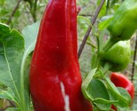 This upward facing (mirasol) crimson red, thick-walled pepper was one of the biggest surprises in the 2024.garden. It is perfect as a salad or roasting pepper, juicy with just a touch of spice.