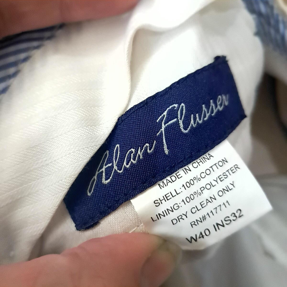 - Alan Flusser Men’s Dress Pants Sz 40x32 cream tan light khaki cotton slacks flat