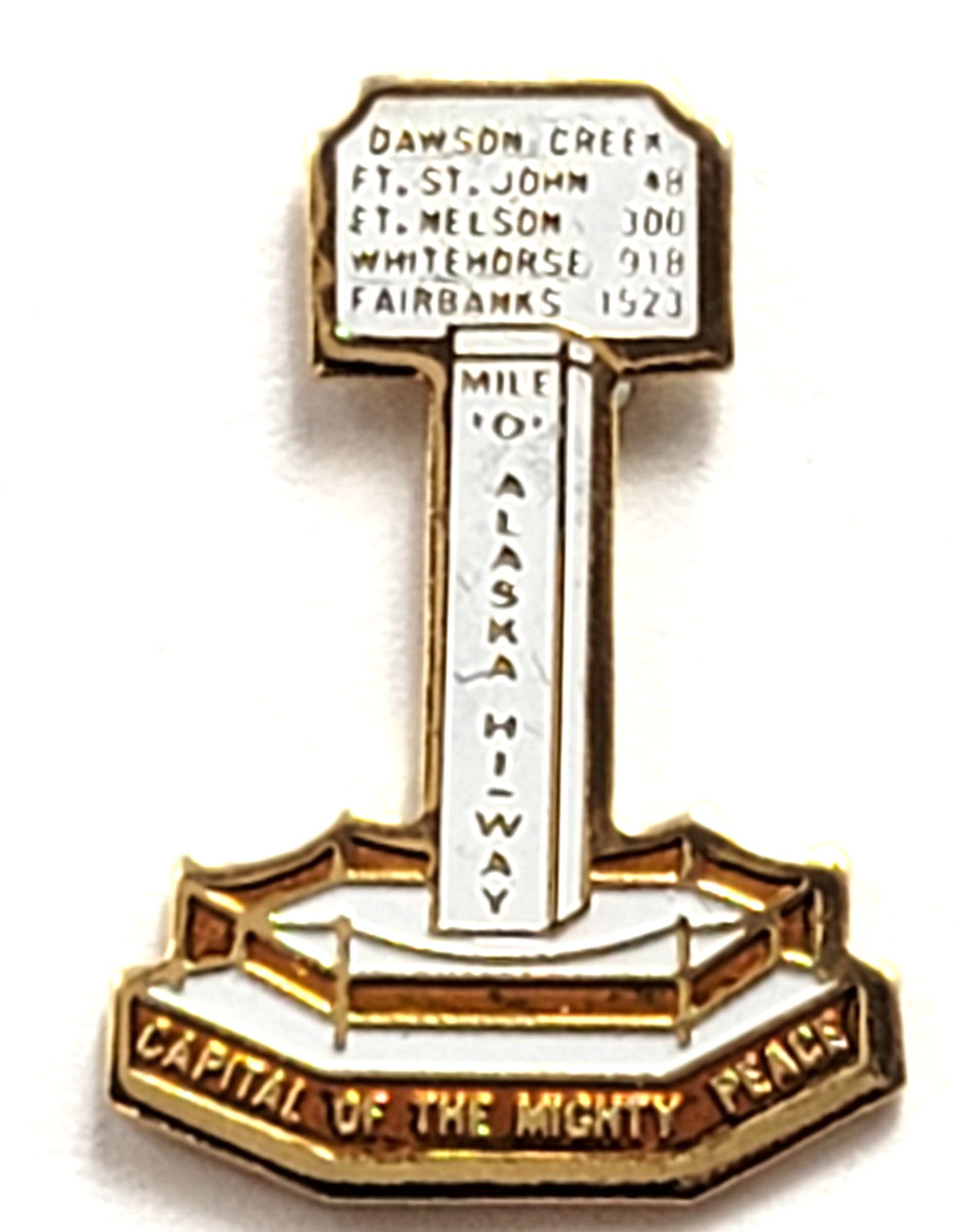 - Alaska Highway Mile 0 Souvenir Pin Dawson Creek BC Capital of the Mighty Peace