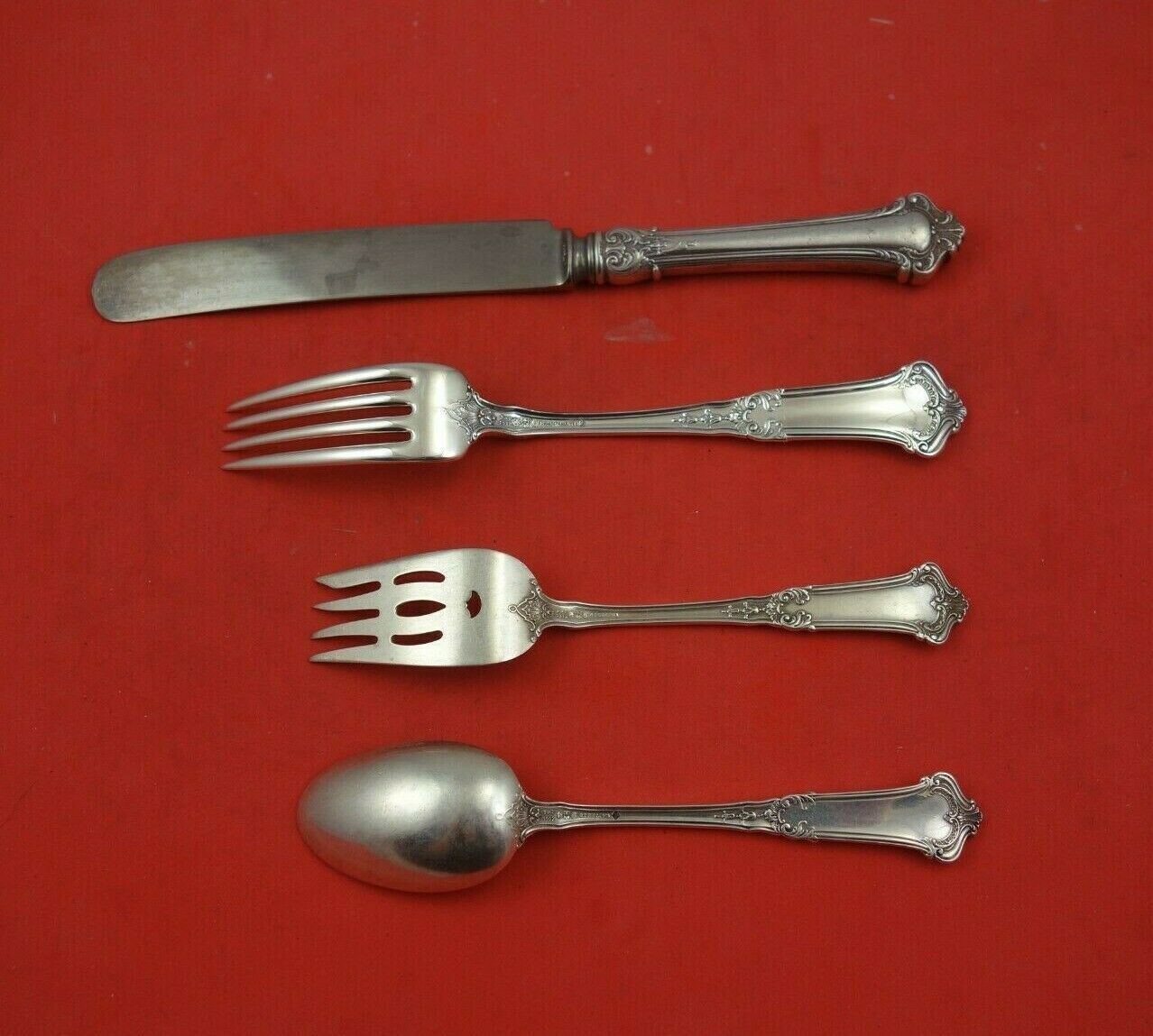 This set is monogrammed (monos vary) and is in excellent condition. Professionally polished and sealed in individual plastic sleeves prior to shipping.