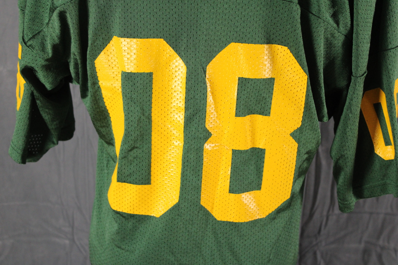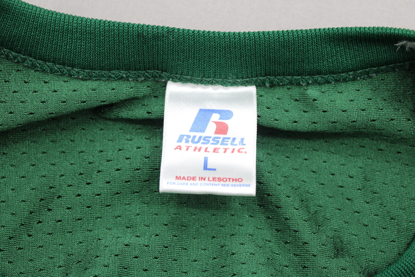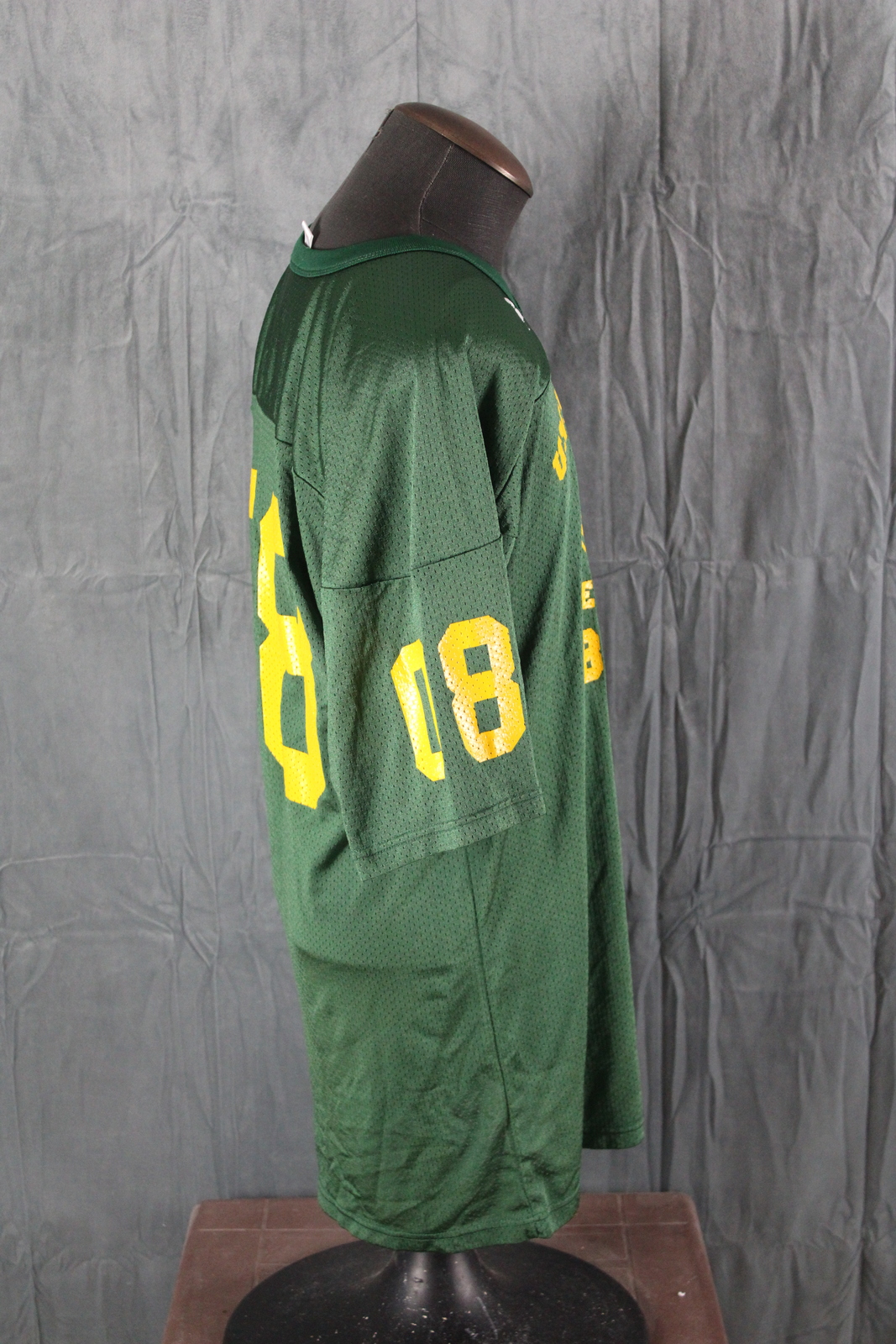 Up for sale is a retro Alberta Golden Bears jersey by Russell Athletic. It has a green base colour with the Alberta Golden Bears logo screened on the chest in yellow. Each sleeve and the back of the jersey has 08 screened on in yellow. What a great jersey do not miss out on it.