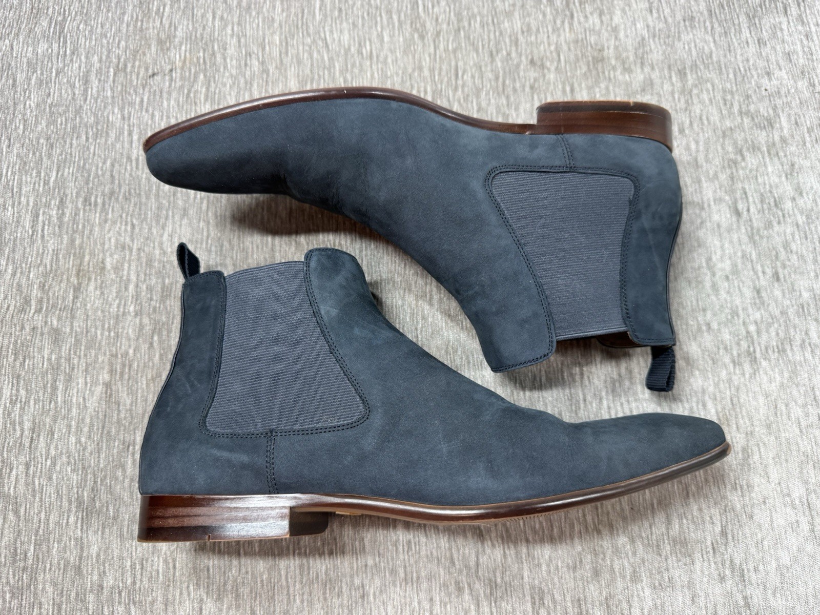 - Aldo Chelsea Boots Mens Size 9.5 Navy Blue Suede Pull On Casual Dress Almond