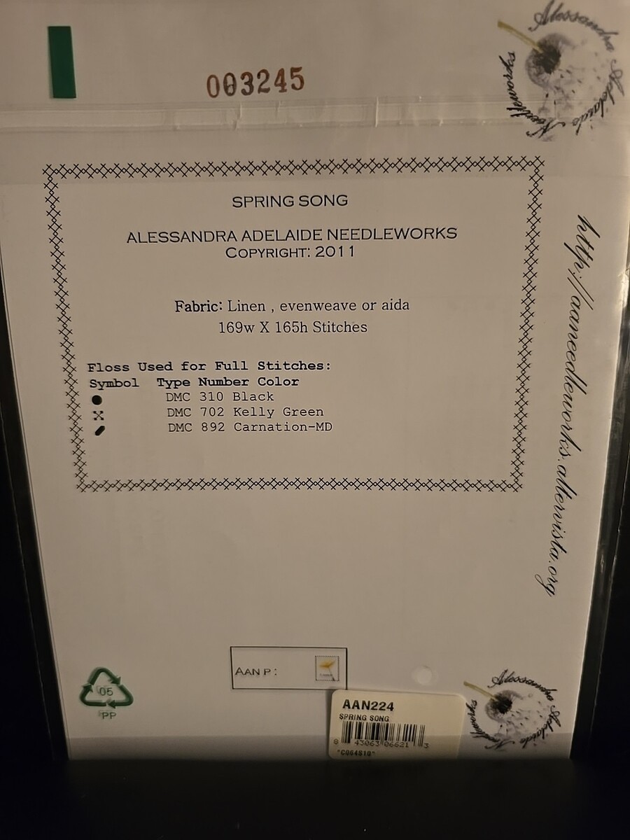 - ALESSANDRA ADELAIDE NEEDLEWORKS Counted Cross Stitch Chart Spring Song RARE