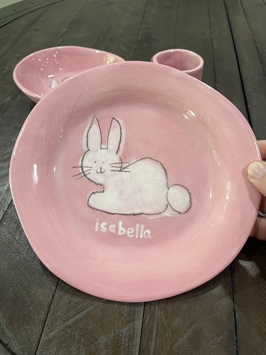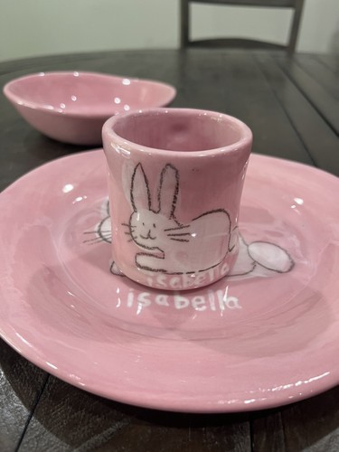 - Alex Marshall Studios "Isabella" Bunny Childs 3 Piece Dish Set Pink Bowl Cup