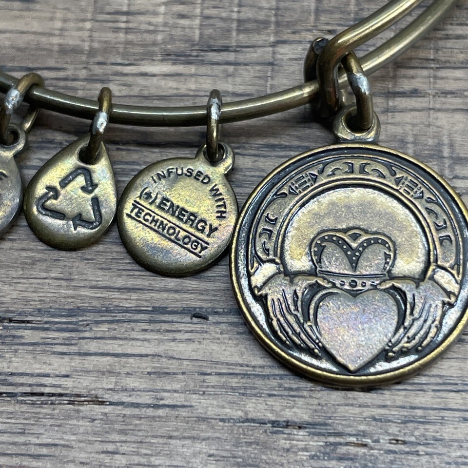 - Alex and Ani Gold Tone Irish Claddagh Token Expandable Statement Bracelet KG