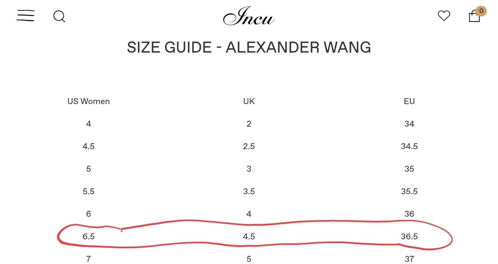 According to Alexander Wang?s size chart: EU 36.5 = US Women?s 6.5.