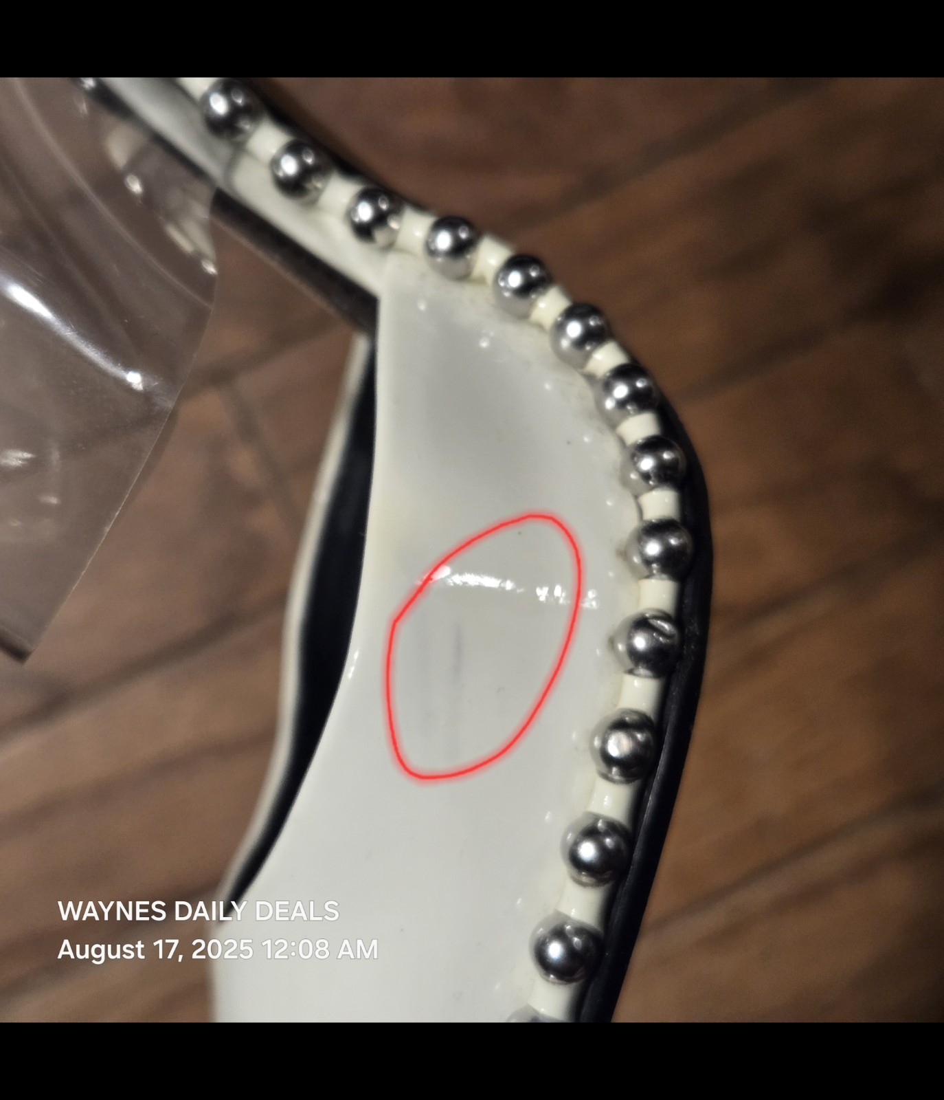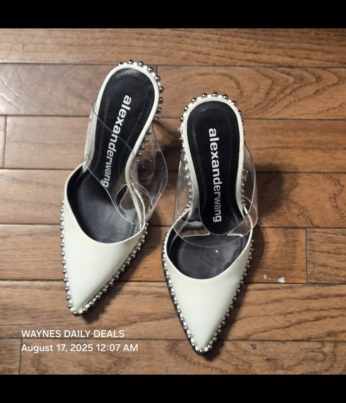 ALEXANDER WANG WHITE PATENT LEATHER POINTED TOE STUDDED MULES 36.5eu /us 6.5