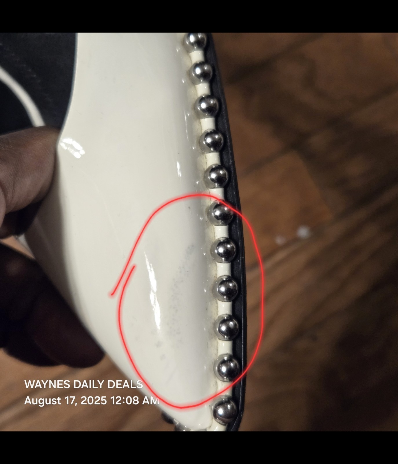 Condition: Shoes have some faded marks (see photos) but still look great overall. No box included. Check pics soles has ware one shoe has ware at the tip of sole check pics