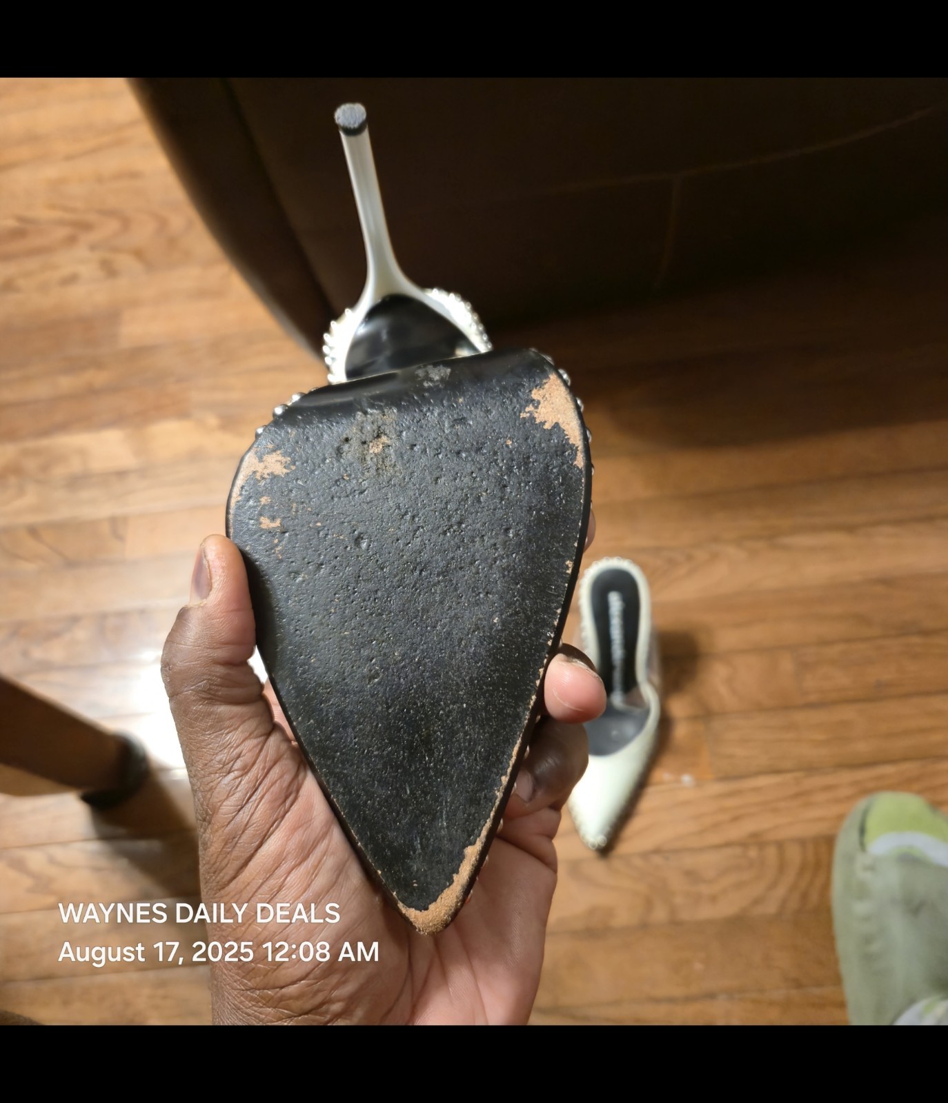 - ALEXANDER WANG WHITE PATENT LEATHER POINTED TOE STUDDED MULES 36.5eu /us 6.5