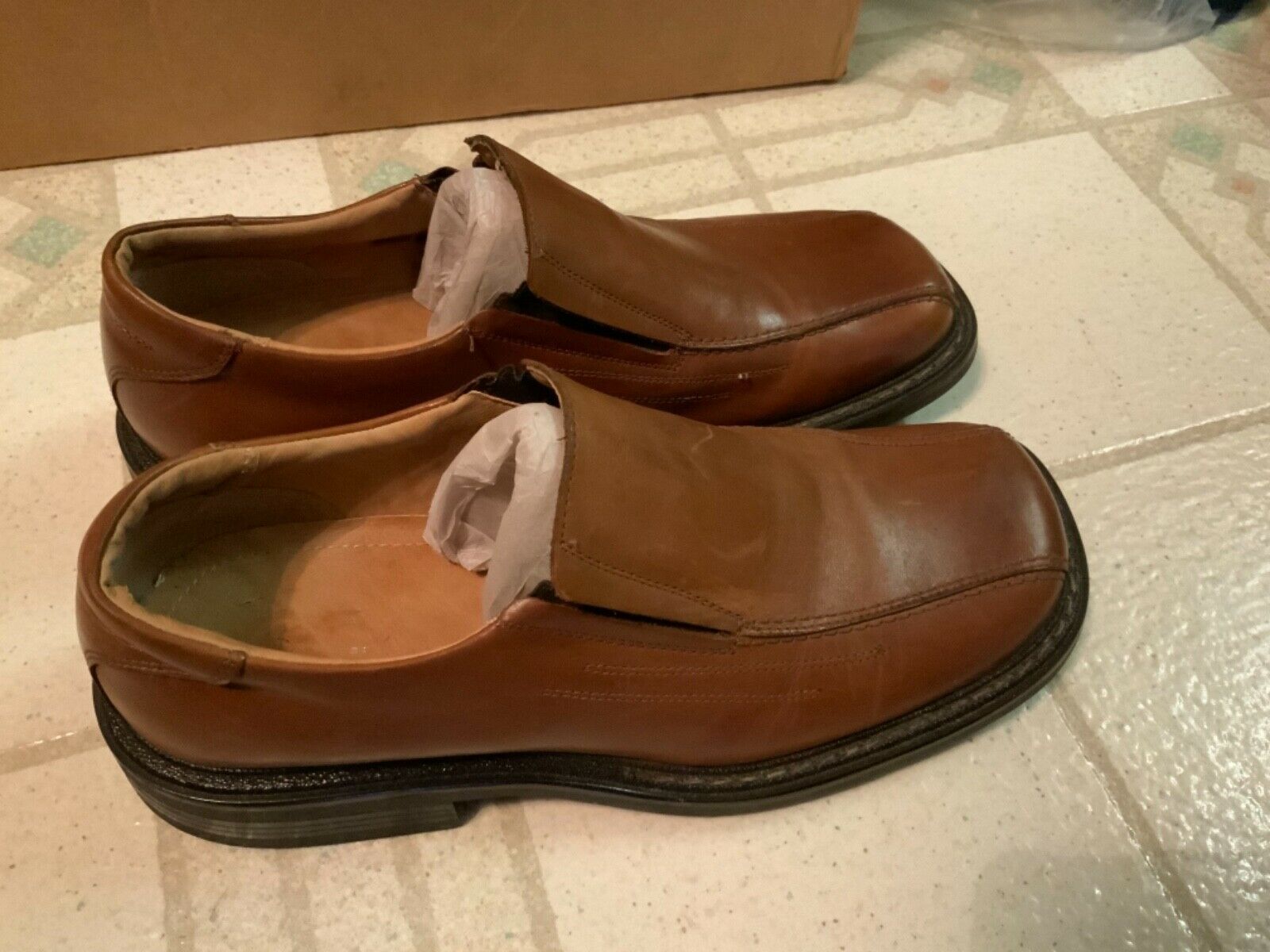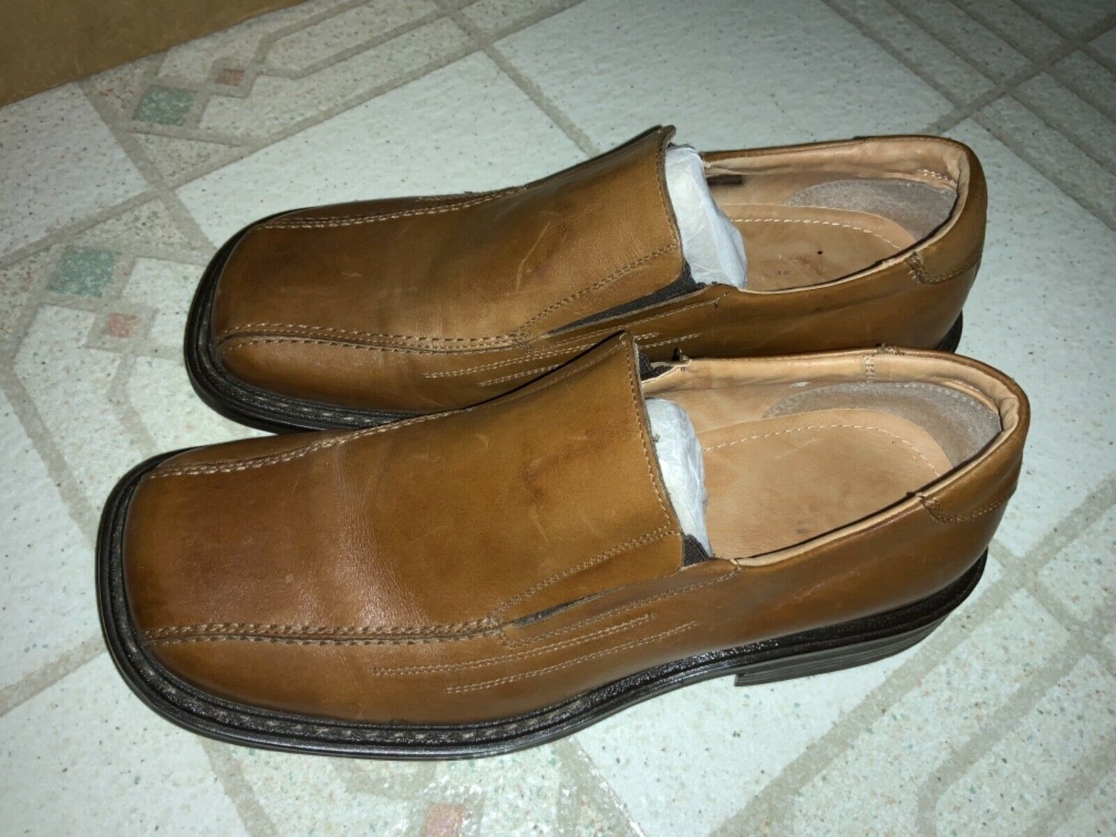 - Alfani Mens Size 10 Brown Leather Solid Slip On Casual Dress Loafers Shoes