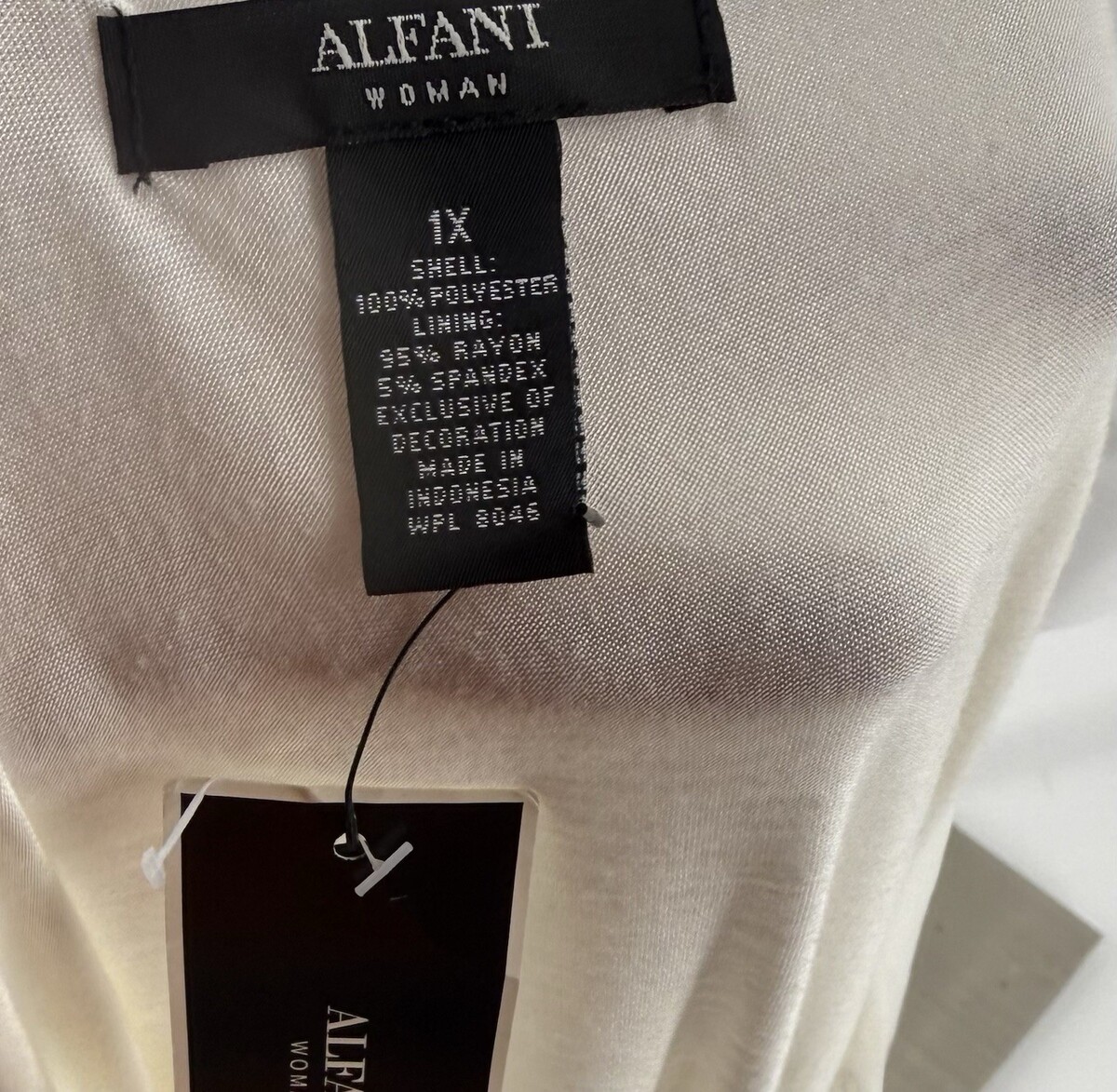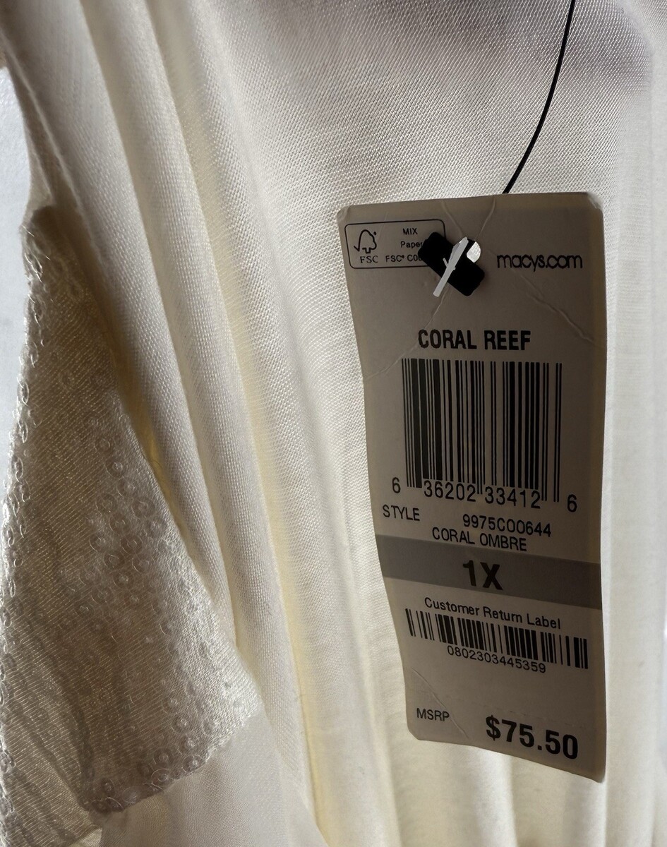 - Alfani Womens Top Plus Size 1X Ivory Tan Coral Ombré Blouse Sequin Sleeve NEW