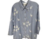 Alfred Dunner Women?s Size L Blue Striped Button-Front Shirt with Embroidered Daisies