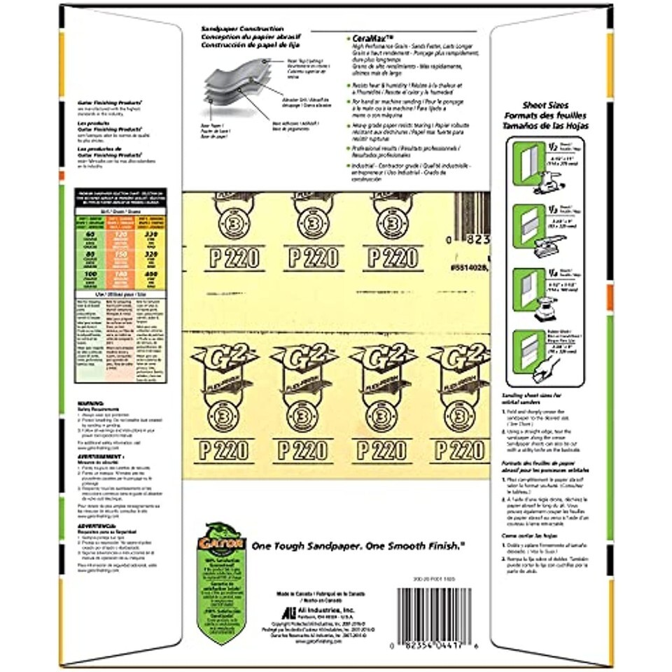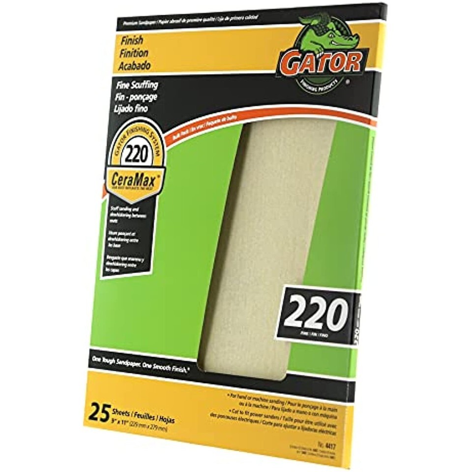 - Ali Industries 4417 CeraMax 9" x 11" Ceramic Sanding Sheets, 220 Grit, Yellow