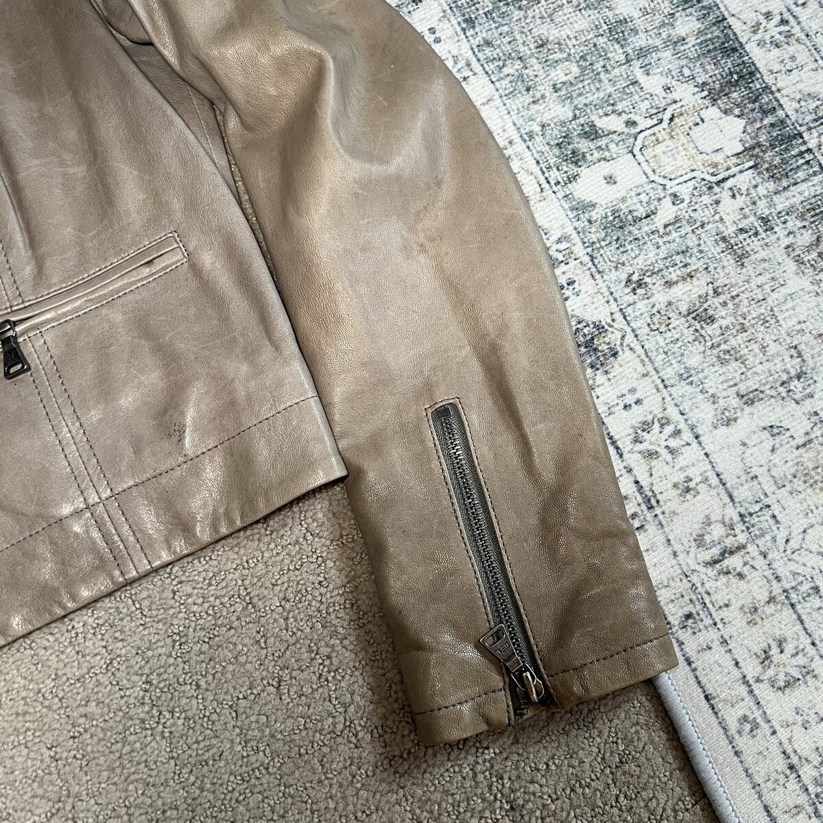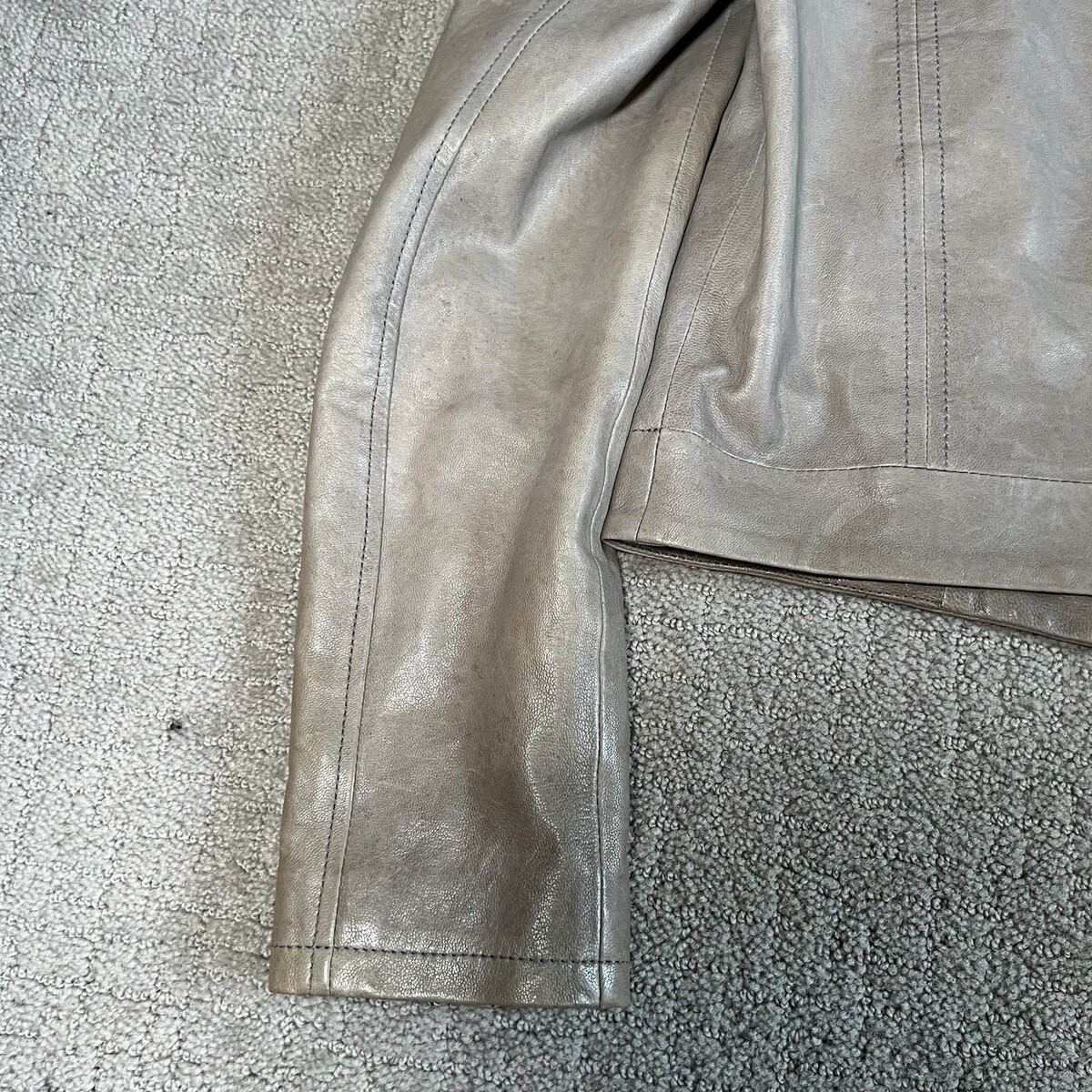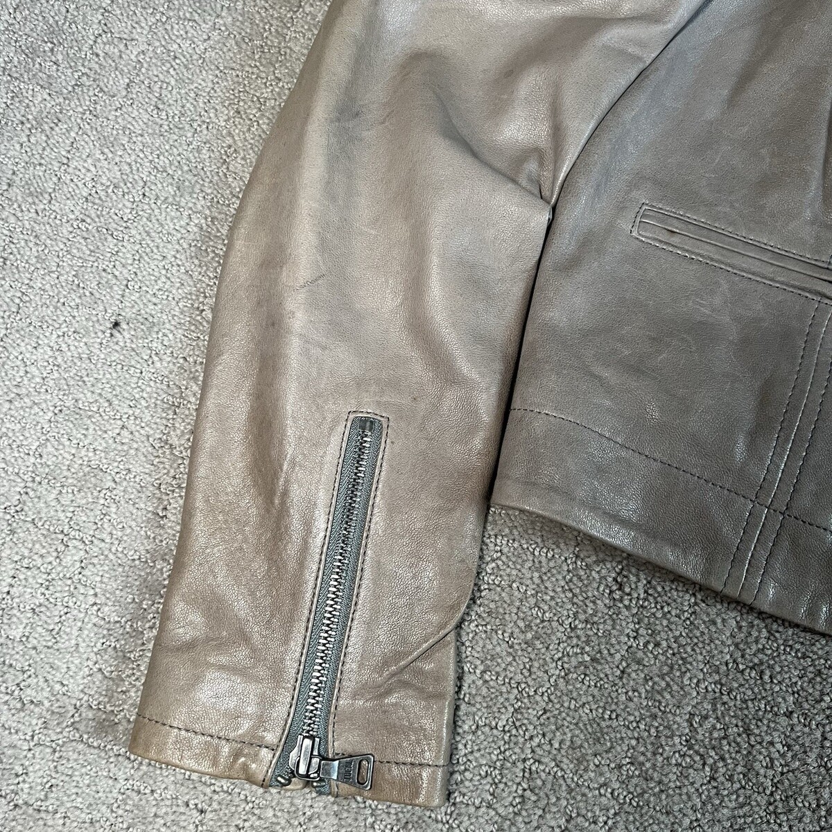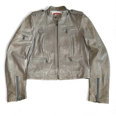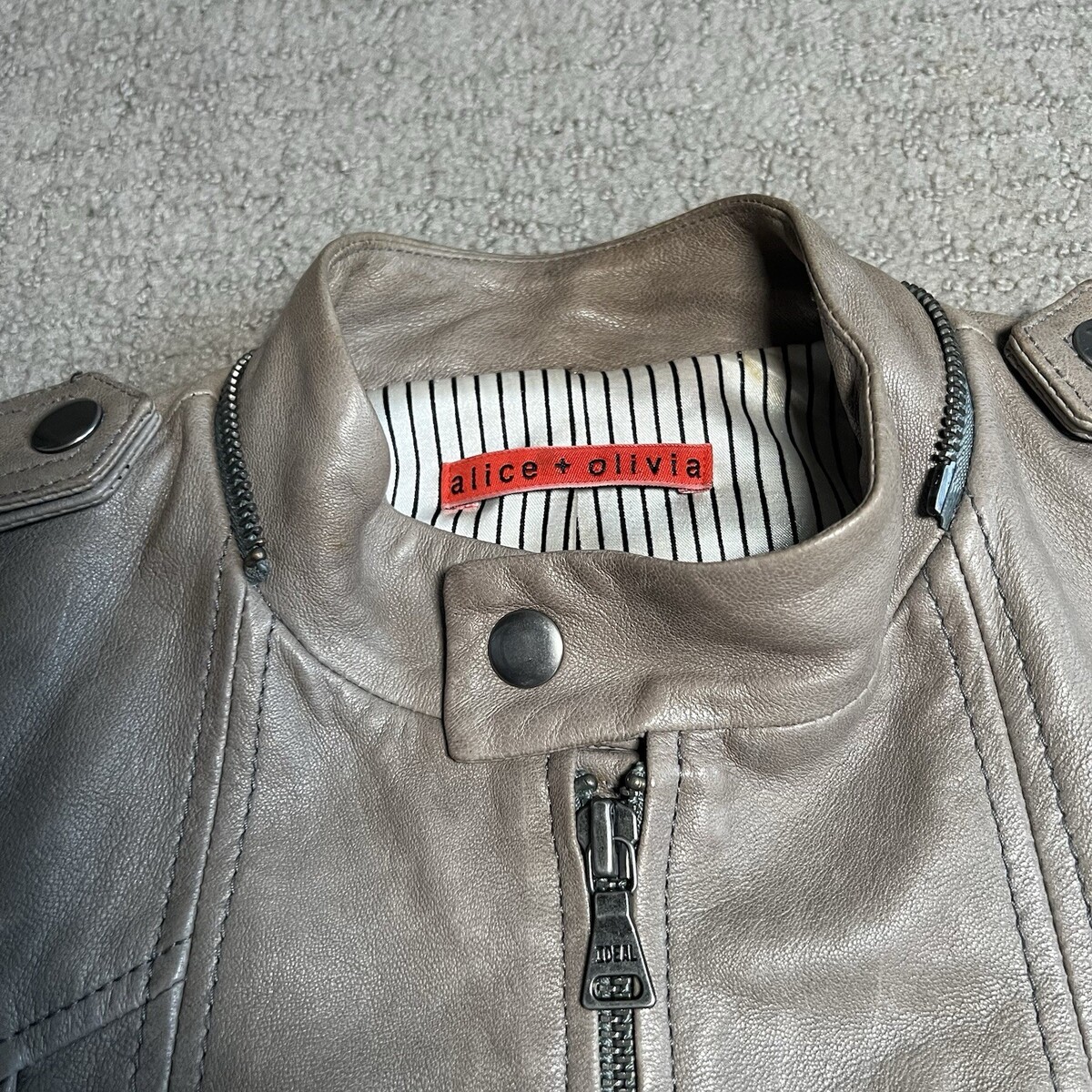 - Alice + Olivia Women’s Motorcycle Jacket Sz S Beige Lamb Leather Biker (NO Hood)