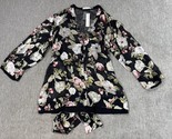 Alice + Olivia Wrap Kimono Jacket Womens Medium Black Floral Sheer Belted Silk