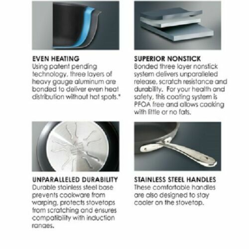 Three layers of PFOA-free nonstick coating ensure easy release of food and quick cleanup. Stainless steel handles are secured with stainless steel rivets.