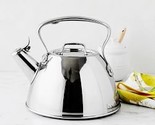 In gleaming stainless with an upturned handle, the All-Clad tea kettle strikes a contemporary profile on the countertop and features the same fine-quality workmanship as All-Clad cookware.
