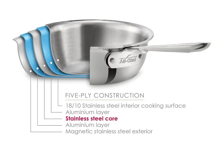 Each of the five bonded layers serves a specific purpose, creating a noticeable difference in cooking performance.