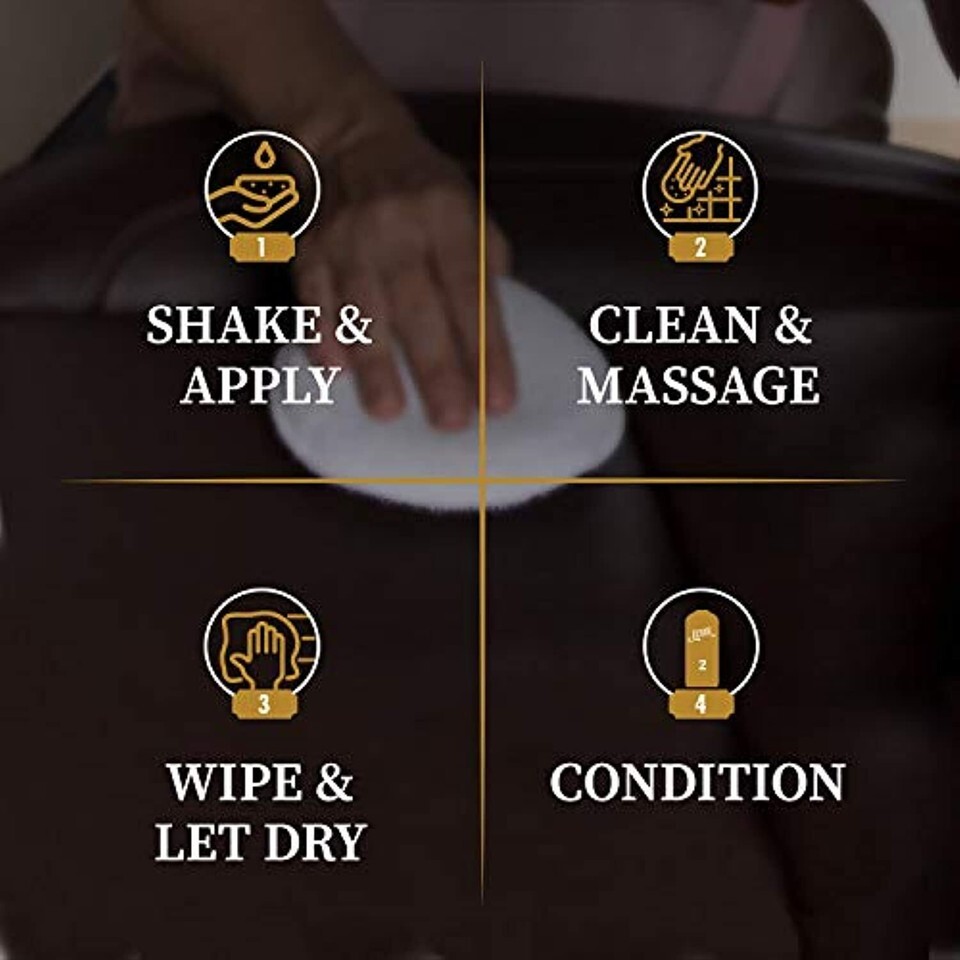 Returns a like-new appearance to leather by lifting dirt and oils, allowing for an easy wipe-away clean