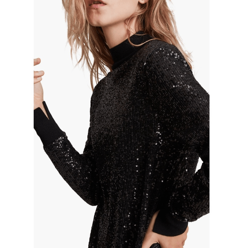 - All Saints Sequin Juela Midi Dress, Black, Cocktail Holiday Party, XS (0) NWT